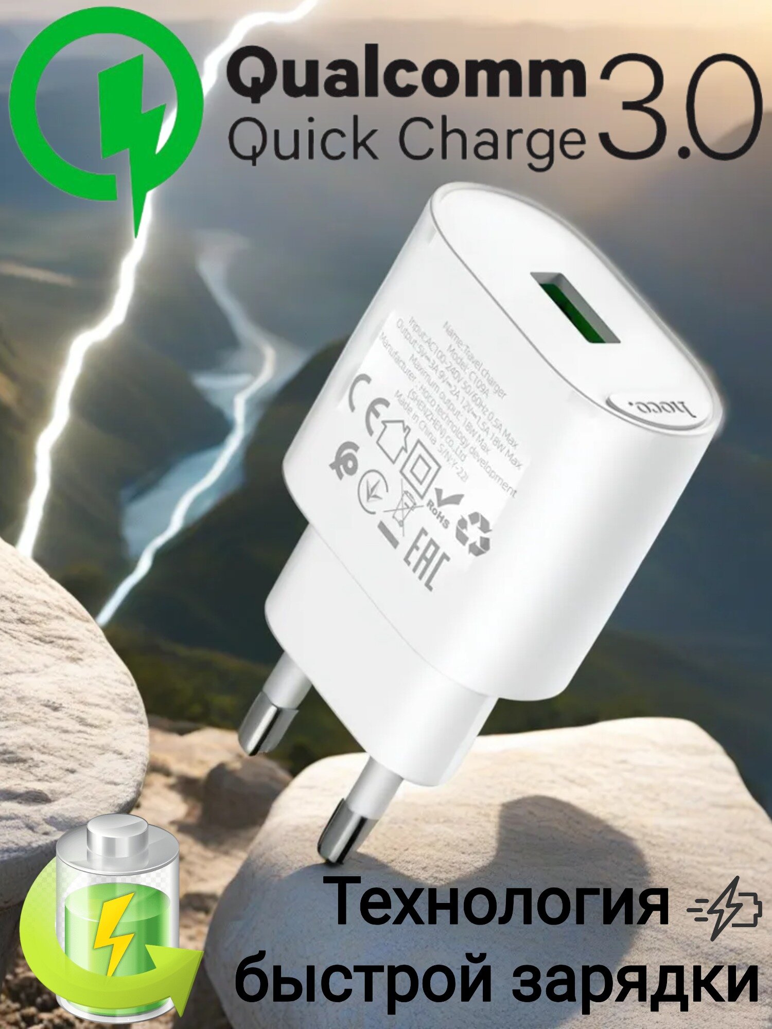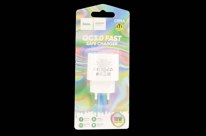 Сетевое зарядное устройство c USB HOCO C109A, QC 3.0 18W, белое интересное:
