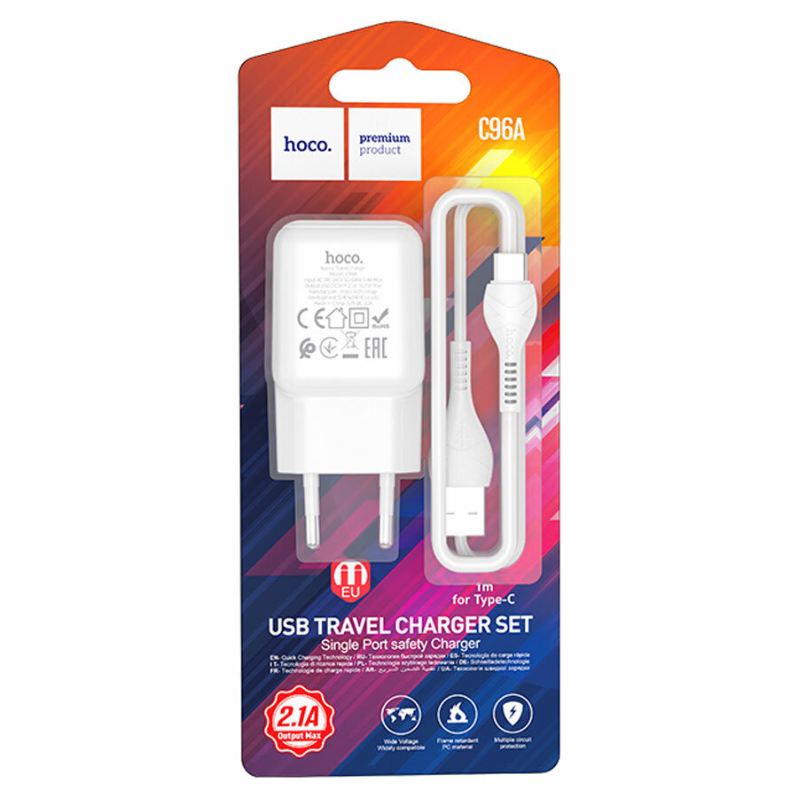 Сетевое ЗУ Hoco C96A + кабель Type-C (1USB/2.1A) белое