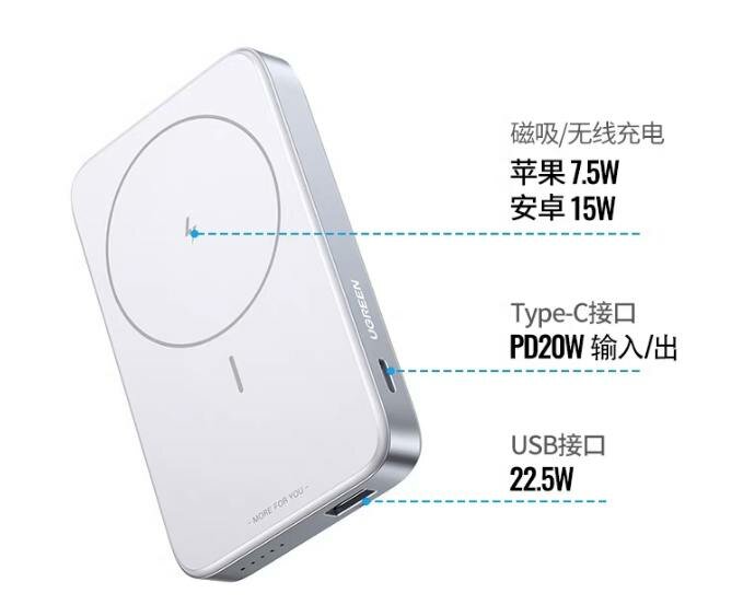 Внешний аккумулятор Ugreen PB206 25154,10000мАЧ, быстрая беспроводная зарядка, белый