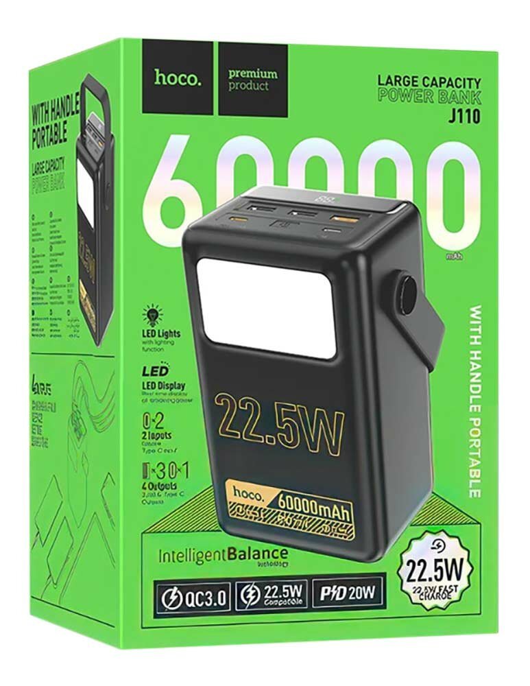 Универсальный Доп. Аккумулятор 60000mAh, J110, HOCO, мощность 22.5W, черный