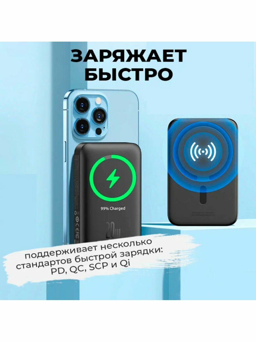 СохранитьВнешний магнитный беспроводной аккумулятор BASEUS Magnetic Mini, 10000 mAh, 20W, Black Overseas Edition, PPCX070001 интересное: