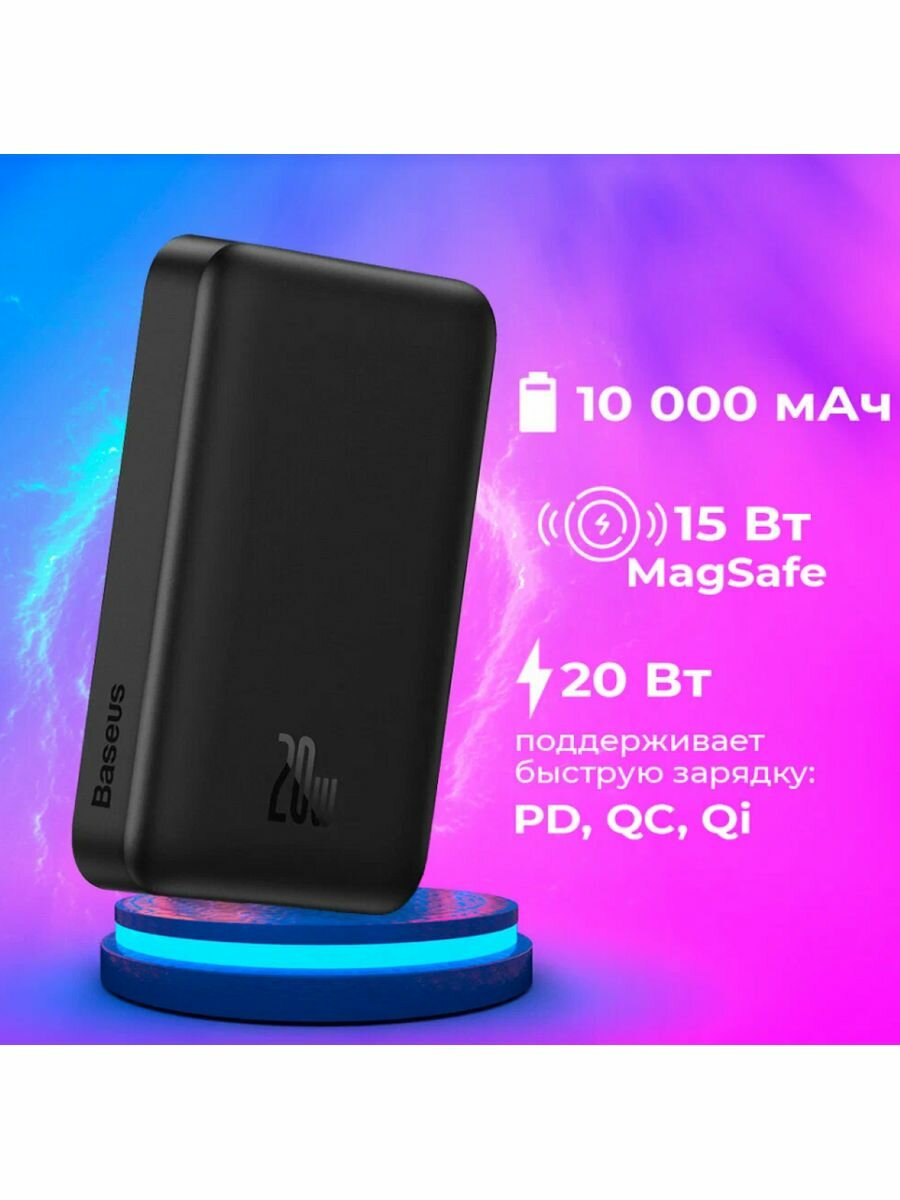 Powerbank с беспроводной зарядкой Baseus Magnetic Wireless 10000mAh 20W (PPCX070001) чёрный