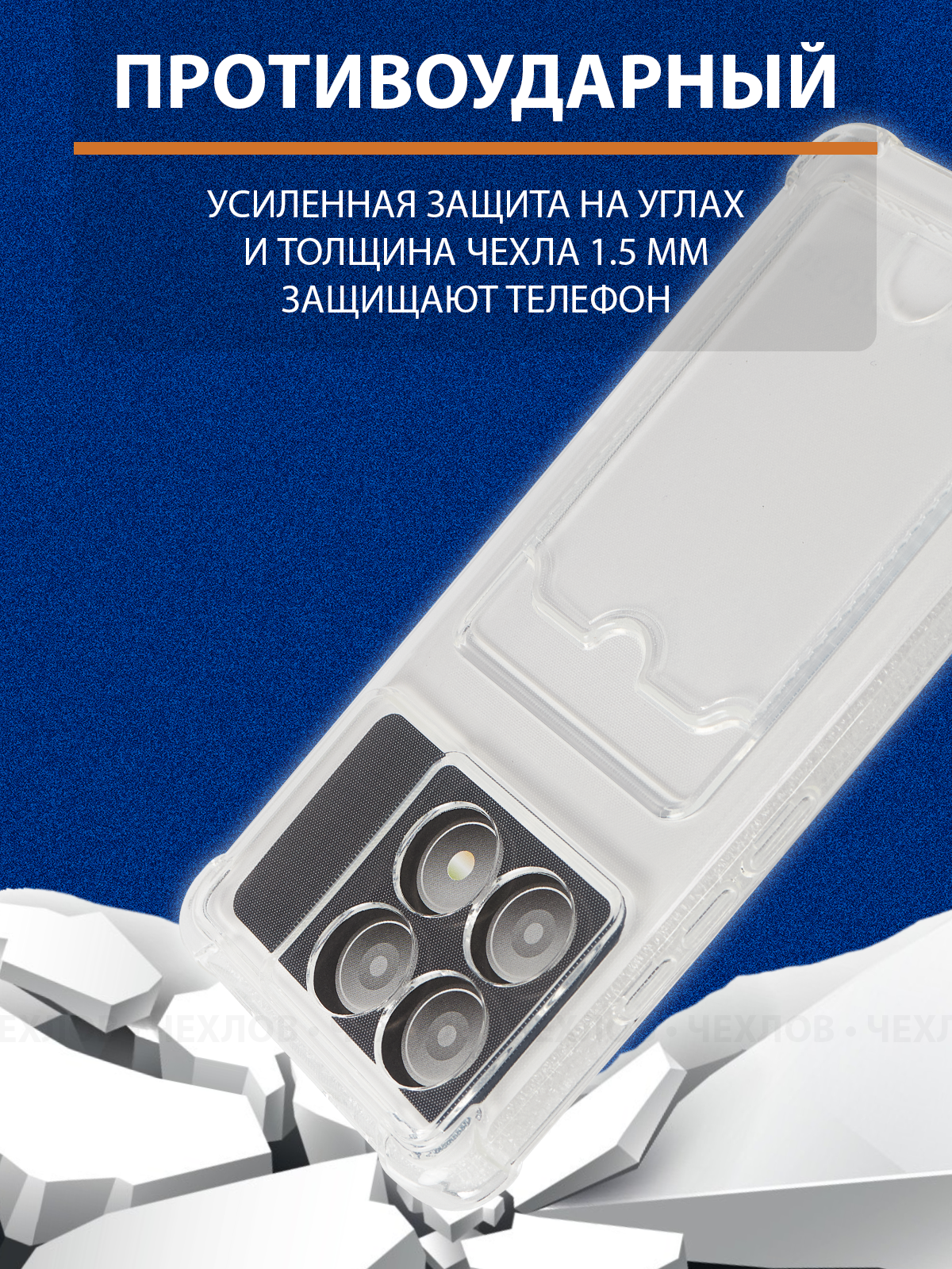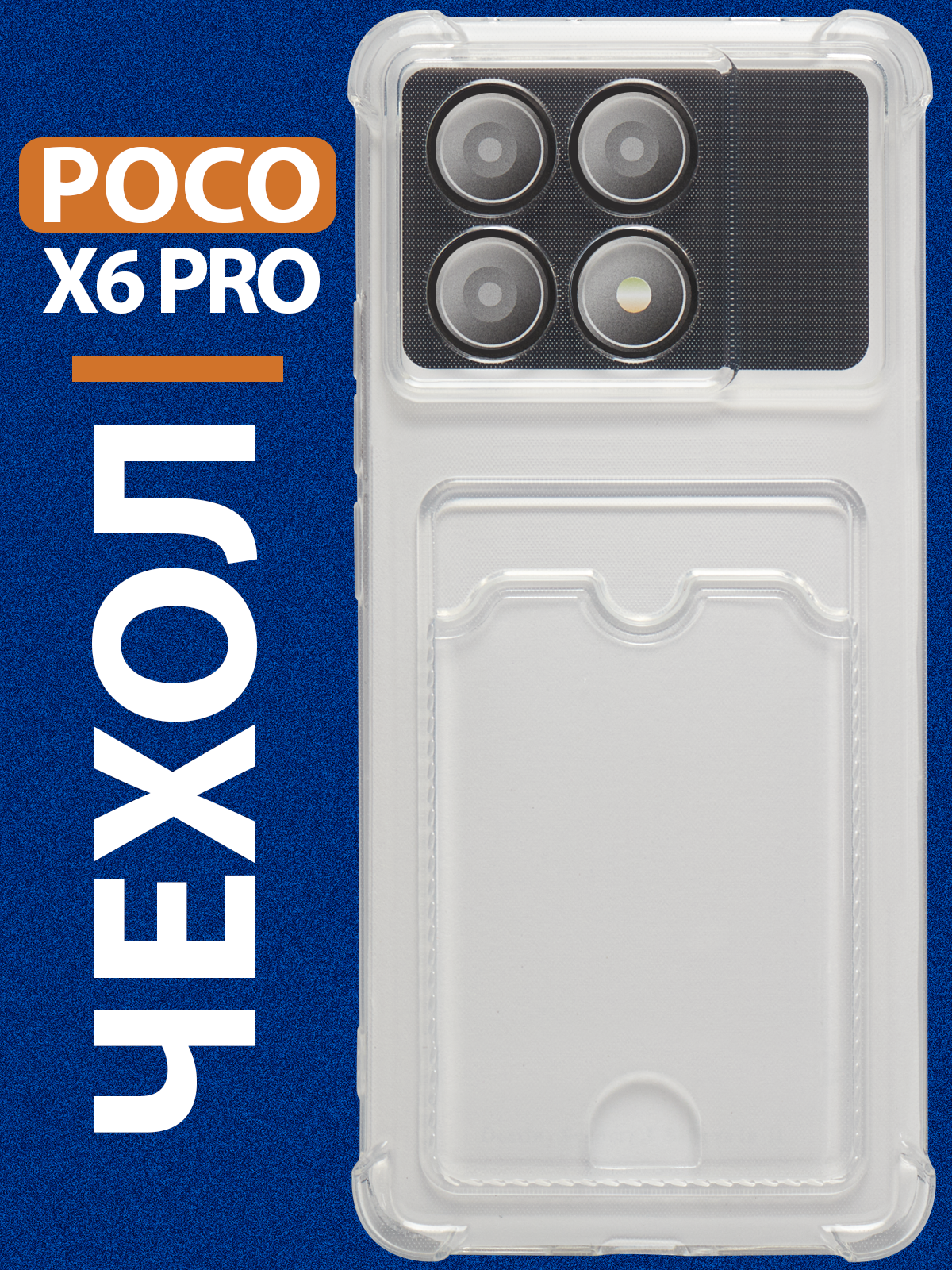 Чехол на Редми нот 13 про Poco M6 Pro 4G ( Redmi Note 13 Pro ) прозрачный силиконовый с карманом картхолдером для карт