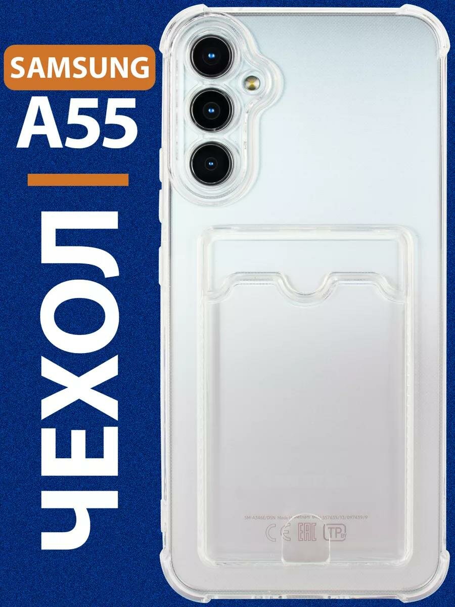 СохранитьЧехол на Самсунг А55 прозрачный силиконовый с карманом для карт противоударный Galaxy Samsung A55 интересное: