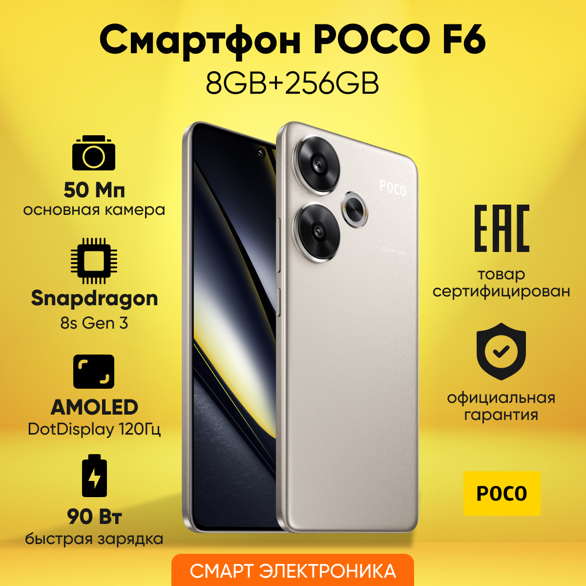 Poco Смартфон Poco F6 5G EU (NFC), 8Gb+256Gb, Золотистый