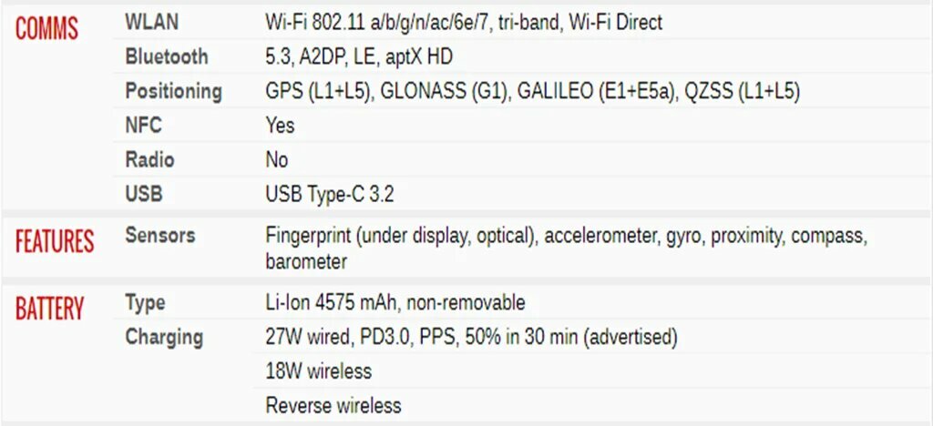 | Функции зарядки | беспроводная зарядка / быстрая зарядка / реверсивная зарядка |