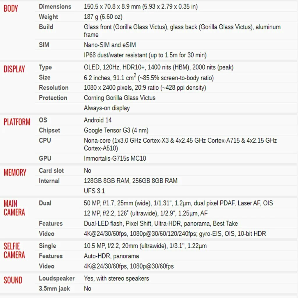 GA05000-US / 6.2" Смартфон Google Pixel 8 256 ГБ розовый [ядер - 9x(3 ГГц), 8 ГБ, 1 SIM, OLED, 2400x