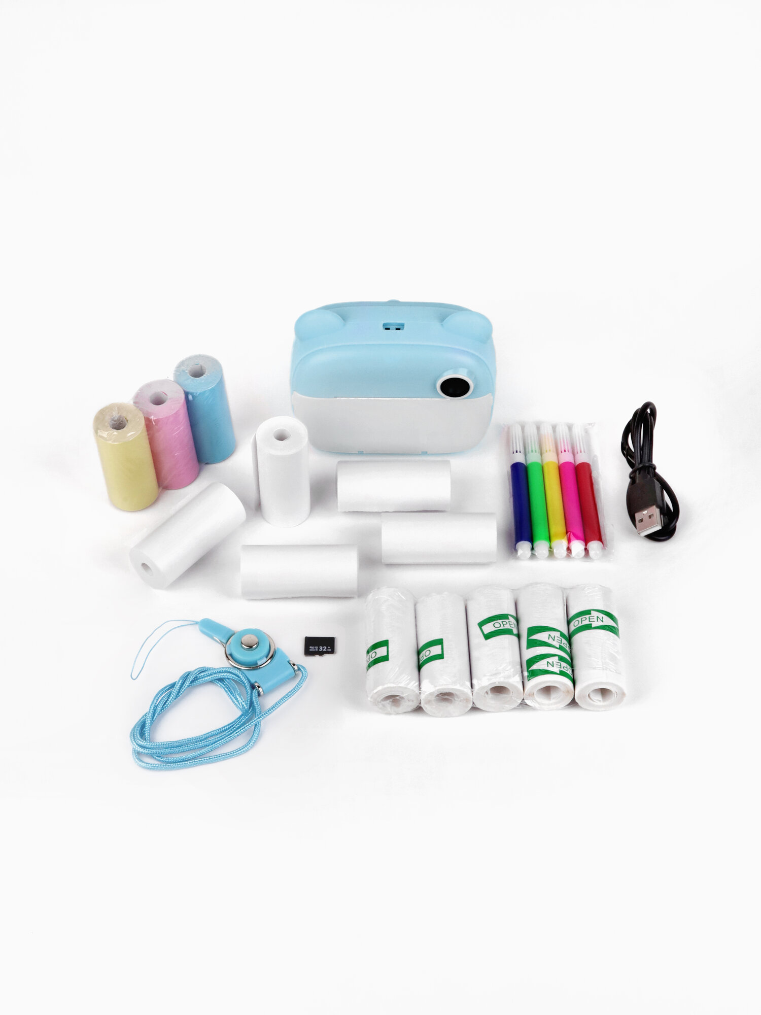 Купить Детский фотоаппарат TechBazar, мгновенная печать, голубой/белый, 48 Мп, аккумулятор