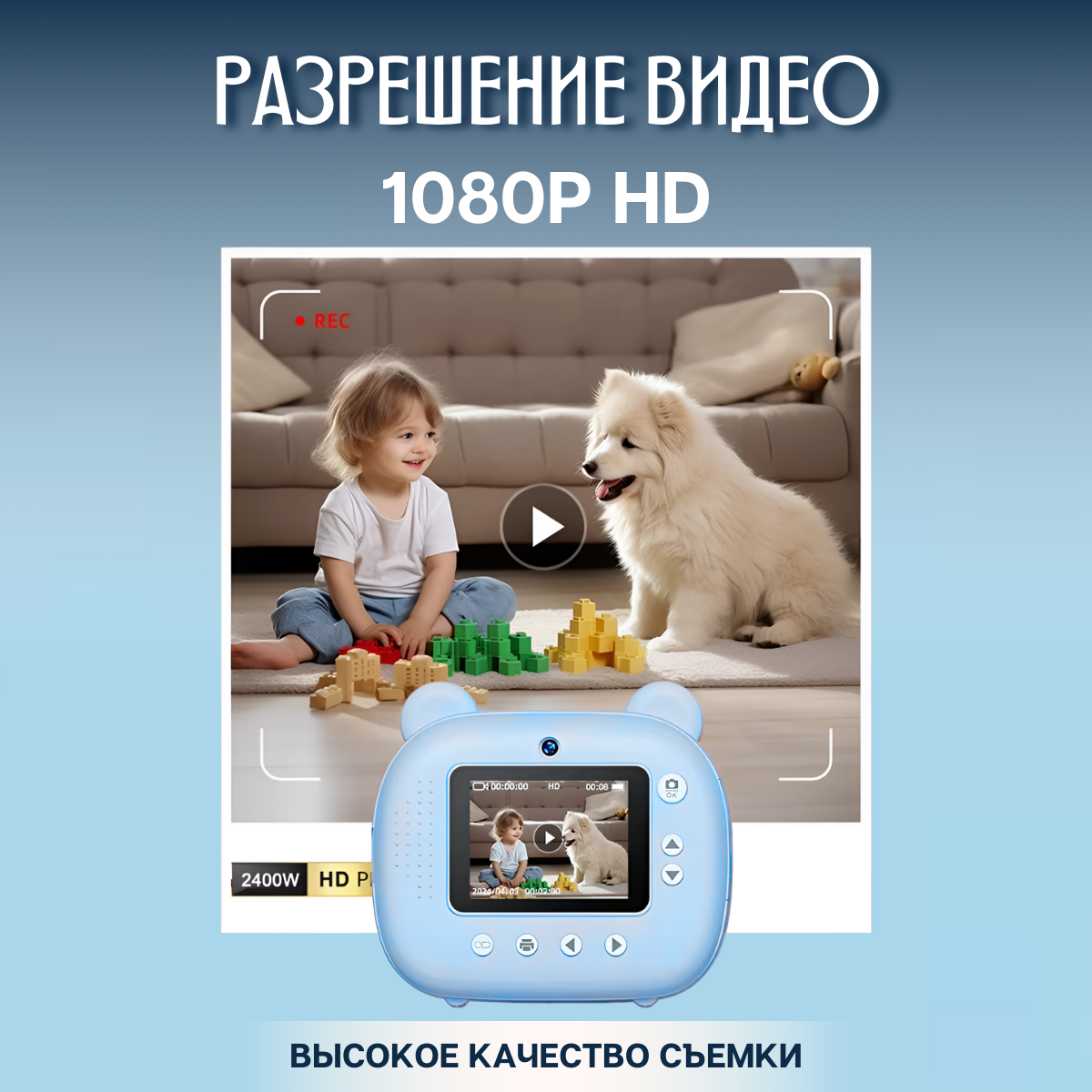 Детский фотоаппарат TechBazar, мгновенная печать, голубой/белый, 48 Мп, аккумулятор интересное: