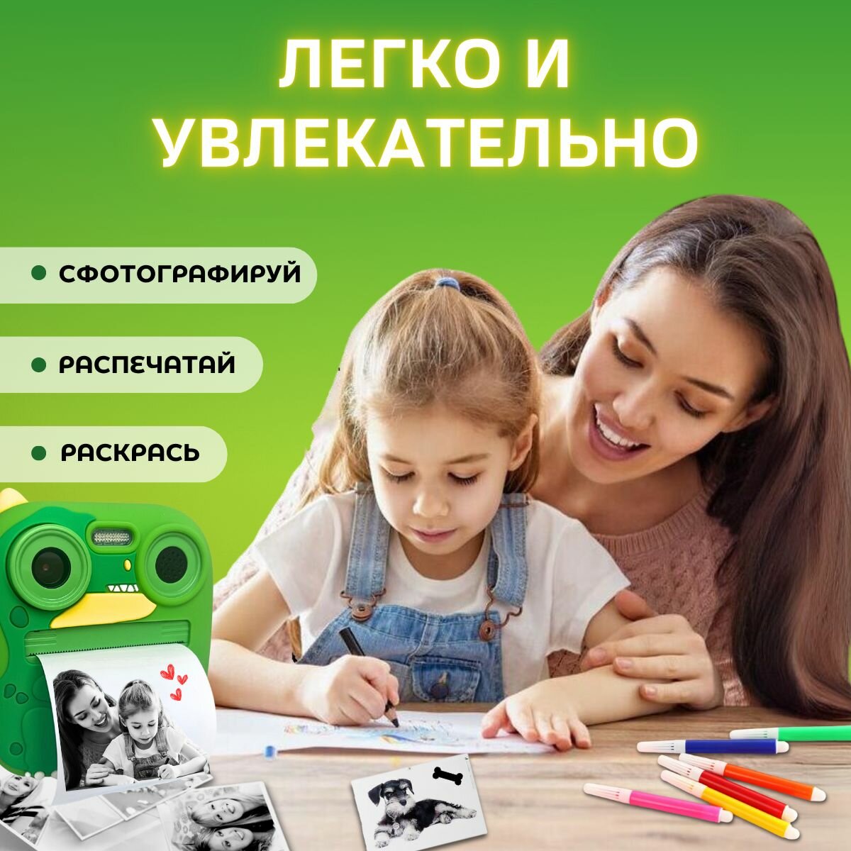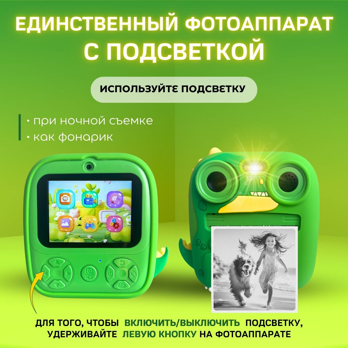 Фотоаппарат моментальной печати детский "Дино" интересное: