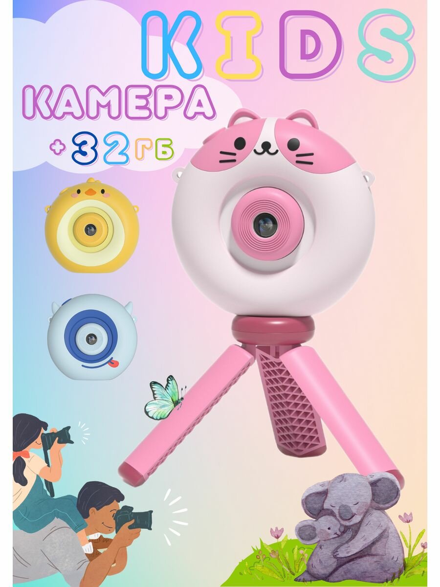 Фотоаппарат детский розовый с ручкой и подставкой интересное: