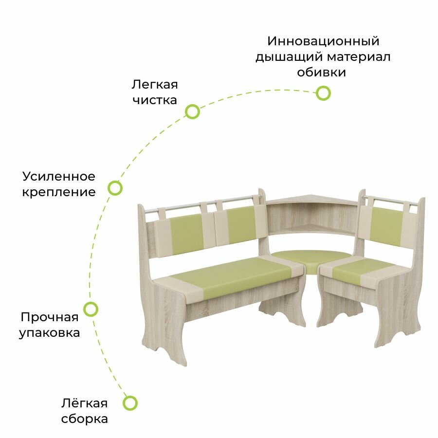 СохранитьДиван BONMEBEL Дельта, дуб сонома/КЗ фисташка/беж, 152х104х90,5 см, кухонный уголок, скамья с ящиком для хранения интересное:
