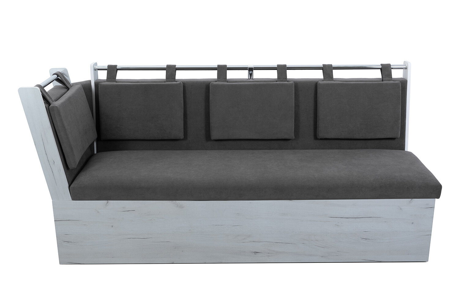 Скамья прямая со спальным местом "Роденго" BONMEBEL Дуб крафт белый /Ткань Ловерс серый