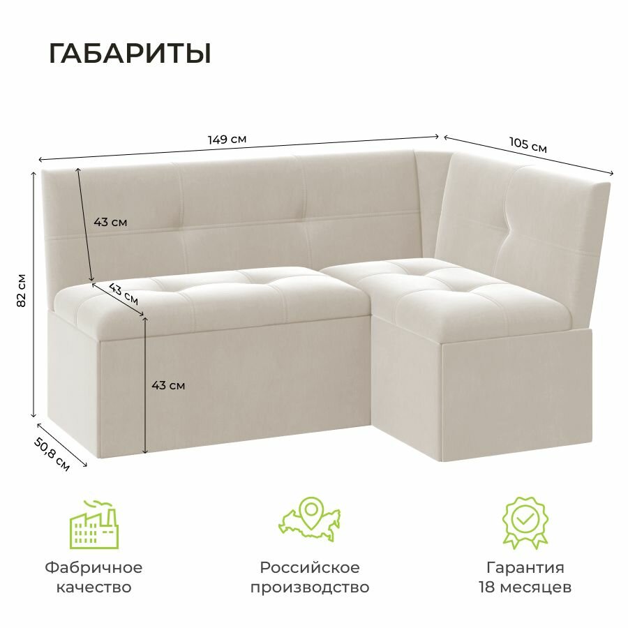 Кухонный уголок BONMEBEL Квадро тип3, ТК Бежевый, 149х105х82 см