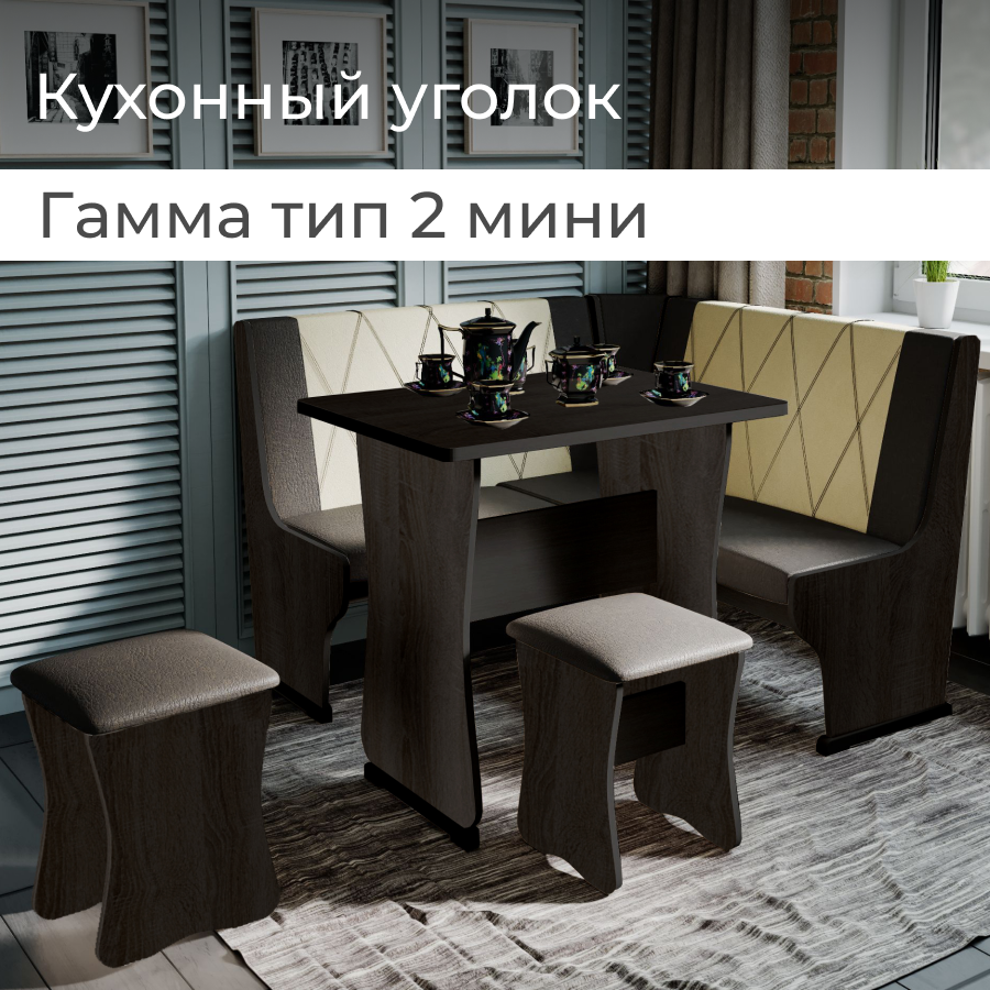 Купить Кухонный уголок BONMEBEL Гамма Тип 2 Мини, ЛДСП Дуб Венге/КЗ Шоколад/Бежевый угловой, стол, диван, табуреты