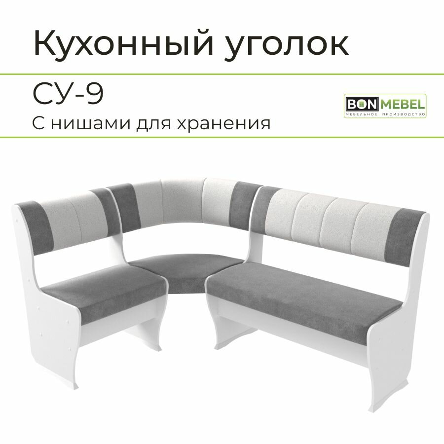 Купить Скамья угловая СУ-9, BONMEBEL, Белый/серый- жемчуг, 107х140х80 кухонный уголок