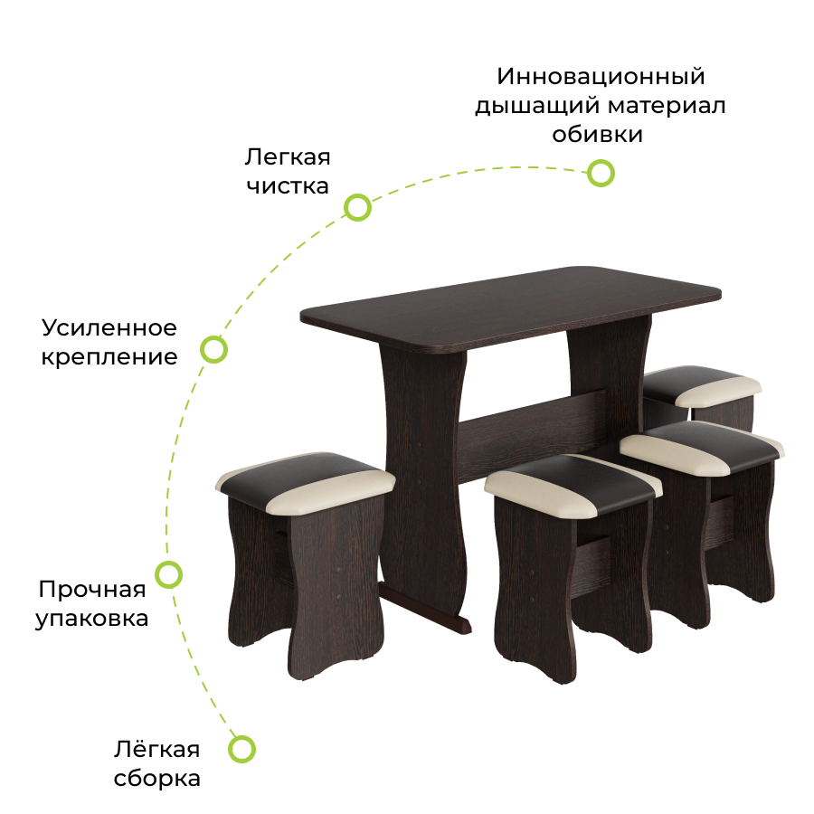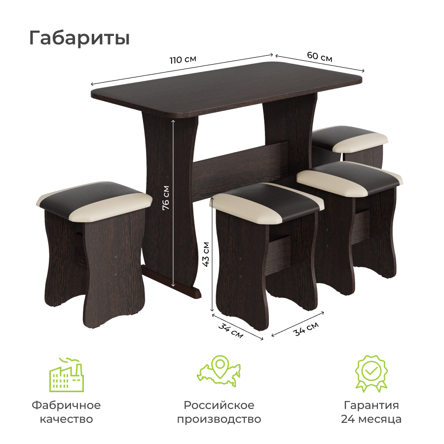 Обеденная группа BONMEBEL, Тип 1, ЛДСП Дуб Венге/КЗ Шоколад/Бежевый, стол 110x60x76 см, 4 табурета интересное: