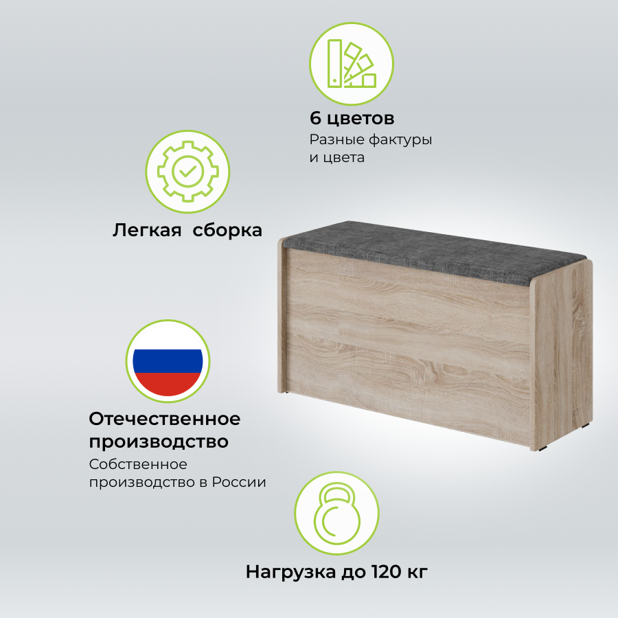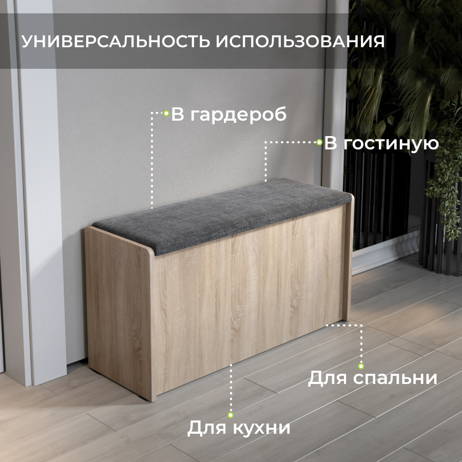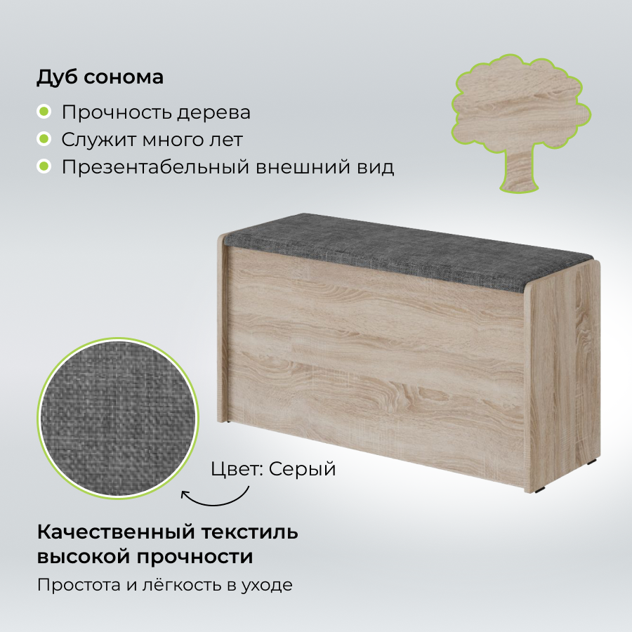 Пуф Чикаго Тип 2, Дуб сонома/Рогожка Серый, банкетка в прихожую, скамья для кухни с ящиком для хранения