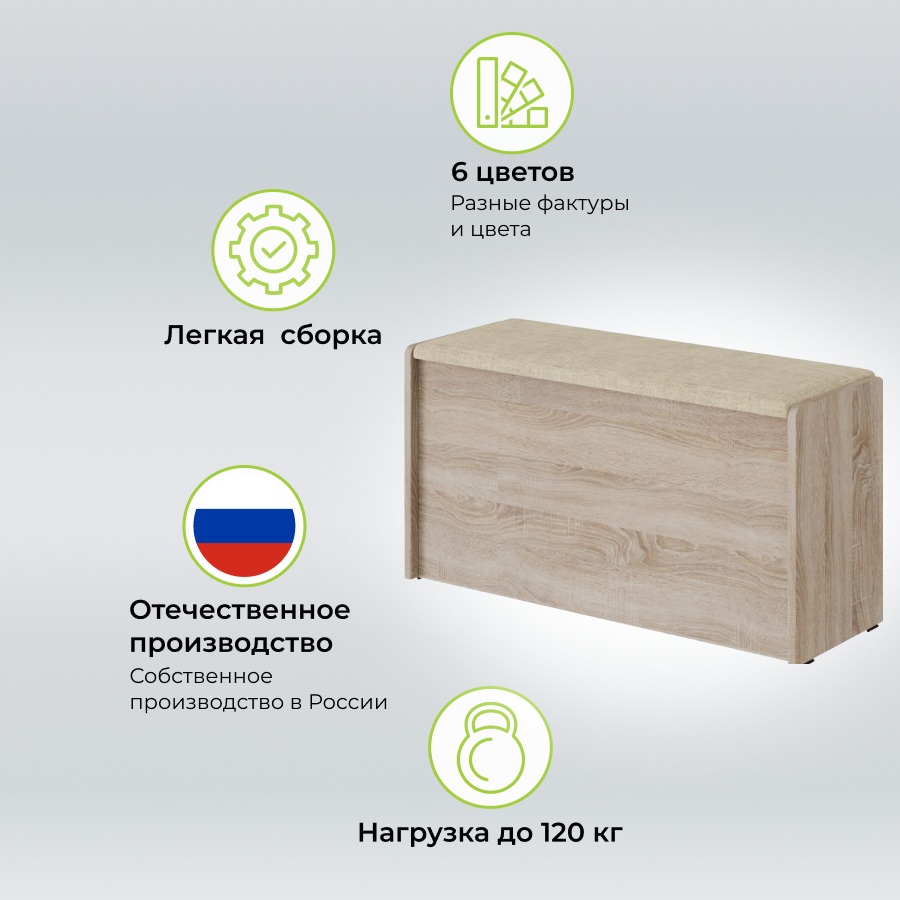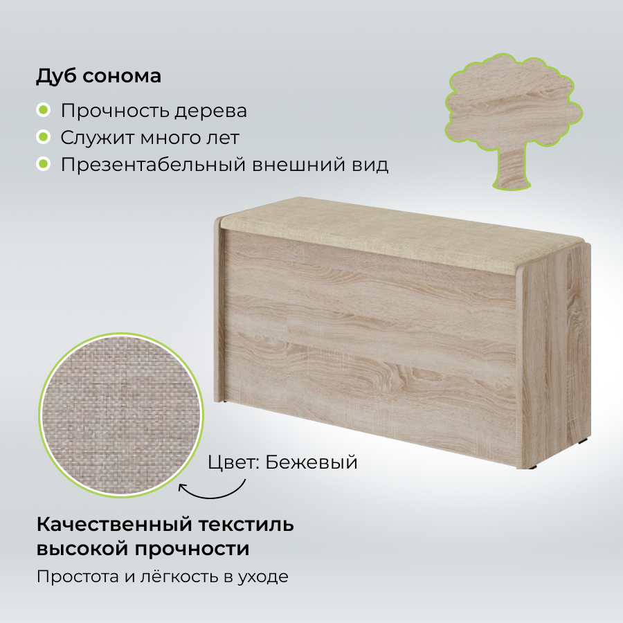 Пуф Чикаго Тип 2, Дуб сонома/Рогожка Бежевый, банкетка в прихожую, скамья для кухни с ящиком для хранения