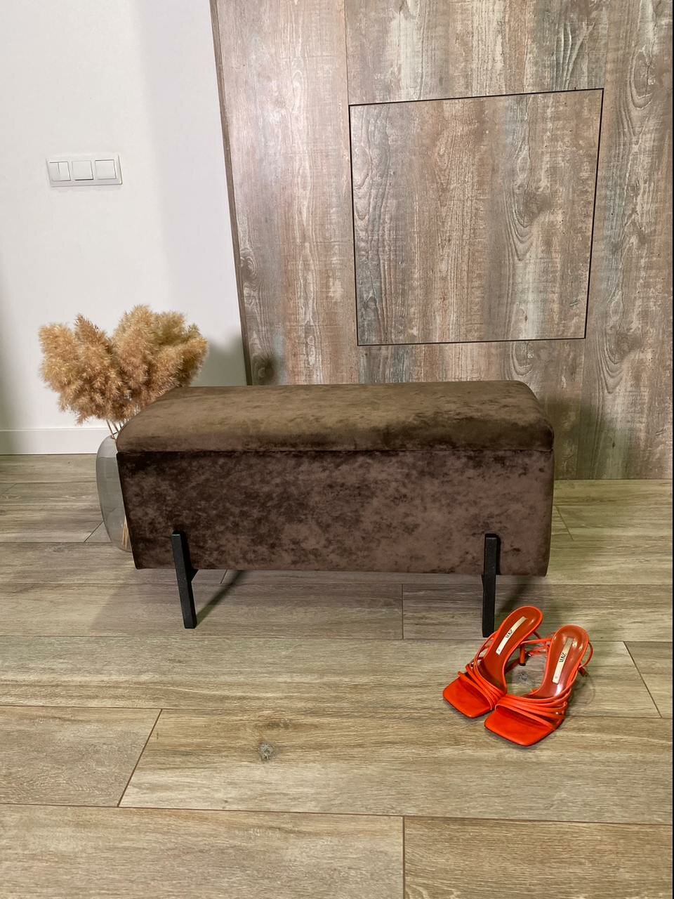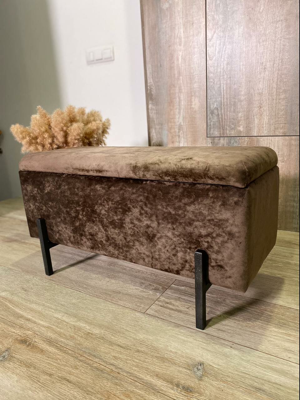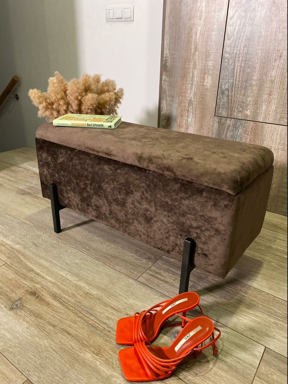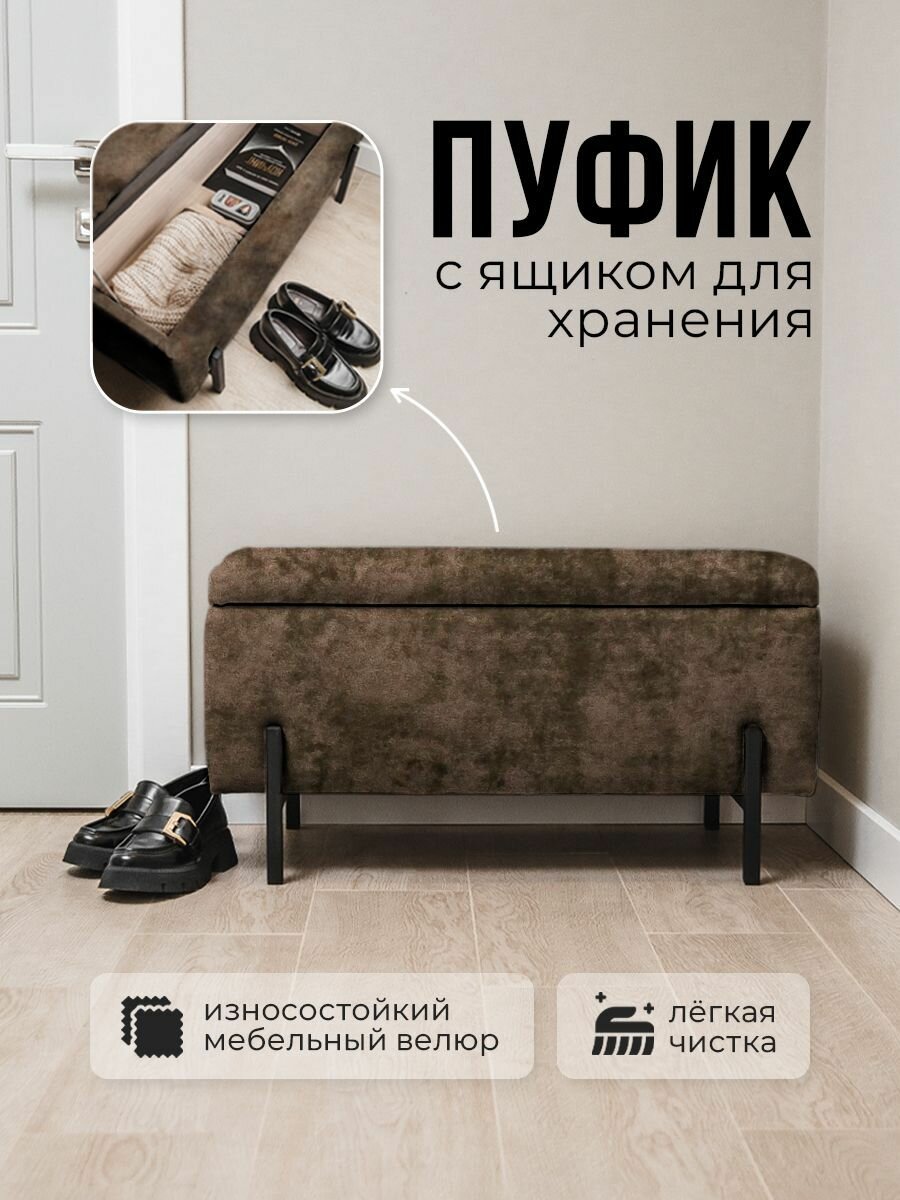 Пуфик в прихожую, пуф банкетка с ящиком для хранения 80*30*42 коричневый интересное: