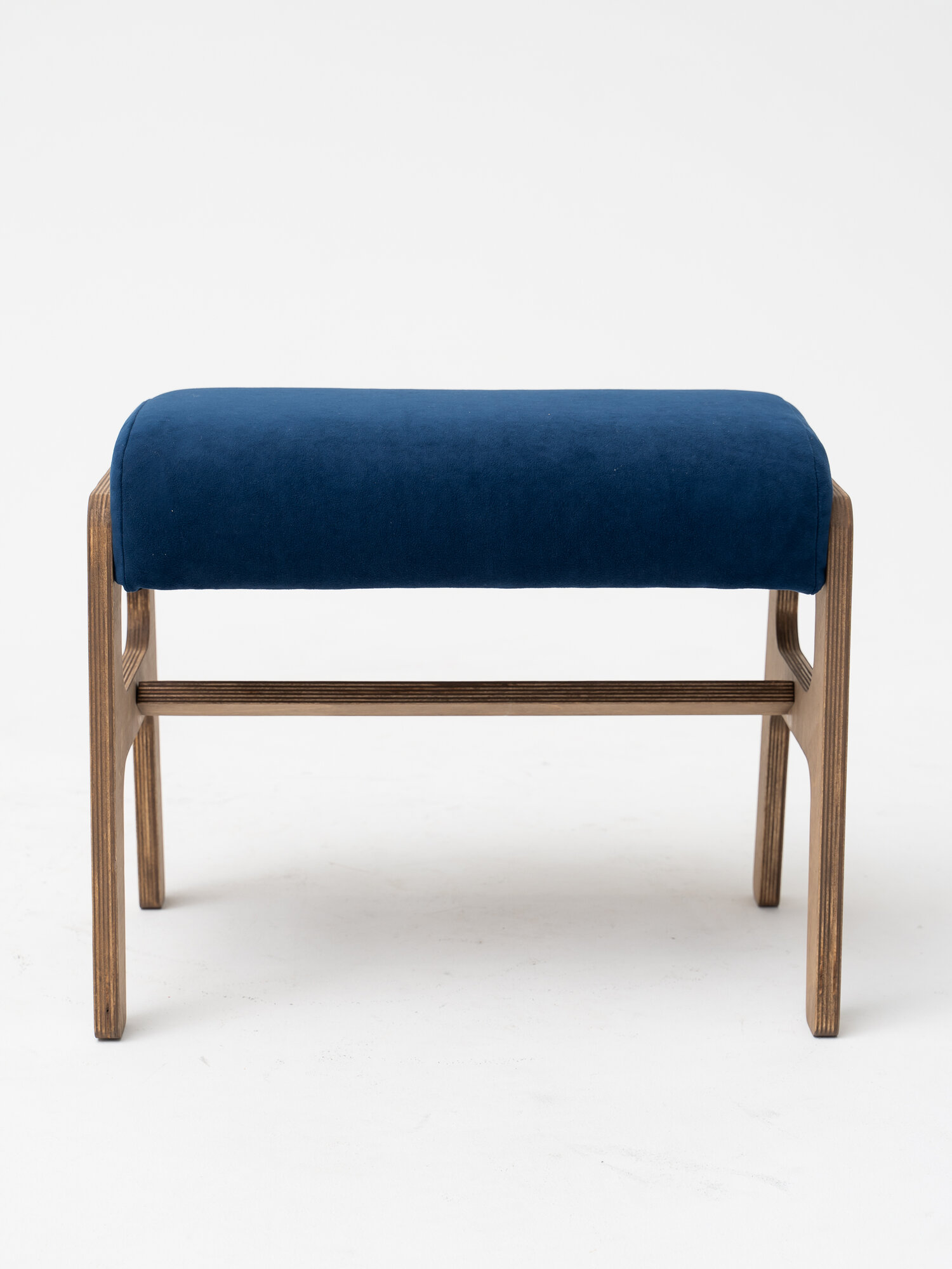 Пуф банкетка ZASIDELIS ЧИЛ для прихожей, на ножках, велюр, синий/коричневый, 52х30х41 см, до 100 кг