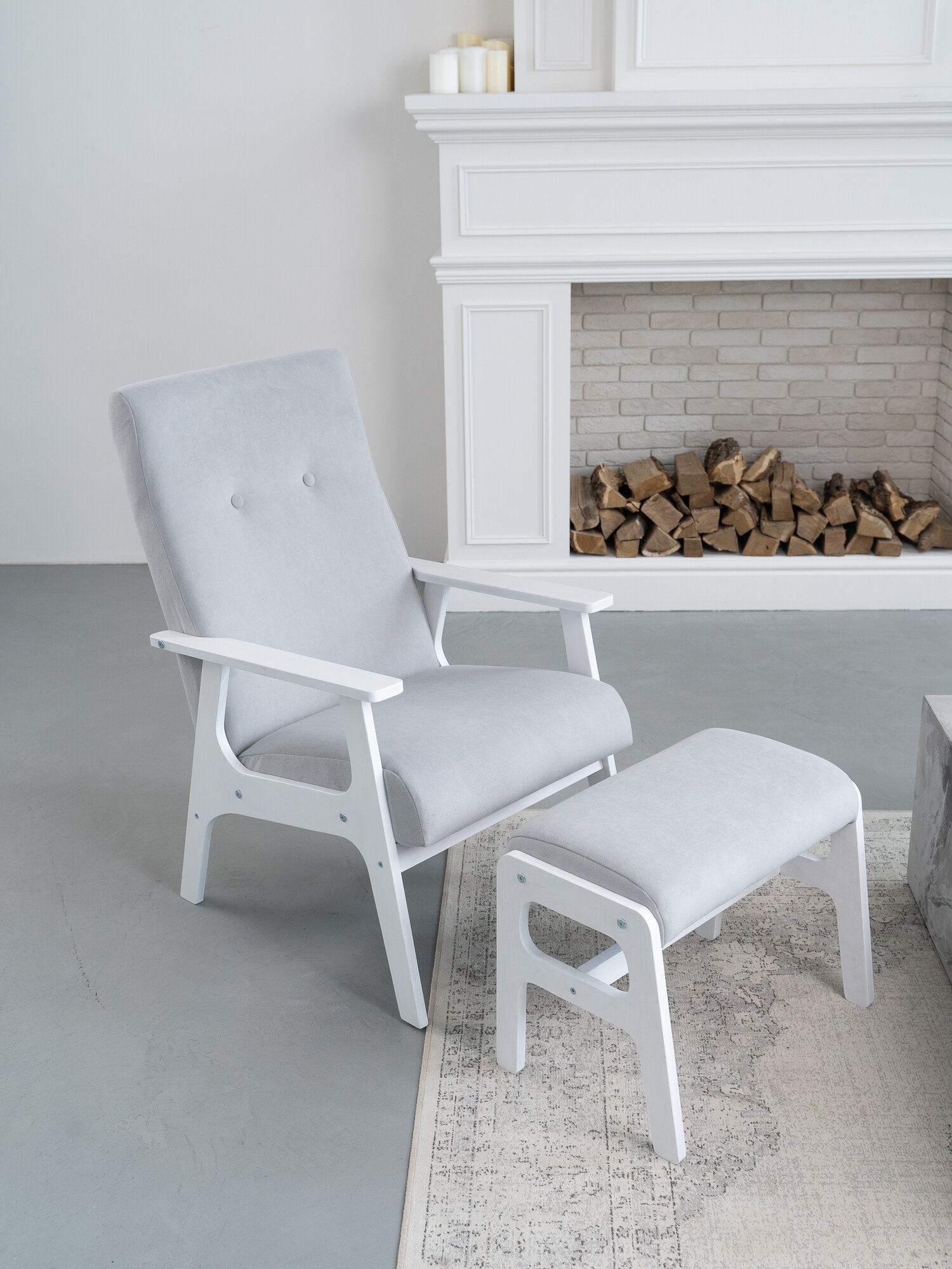 Пуф СHILL на ножках, банкетка, светло-серый, ноги белое масло