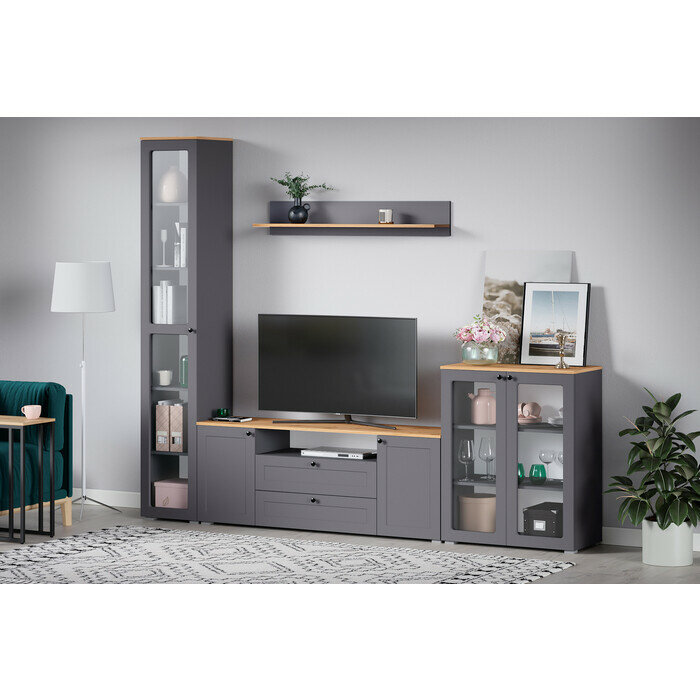 Полка настенная Моби Остин 16.484 серый графит/дуб крафт золотой