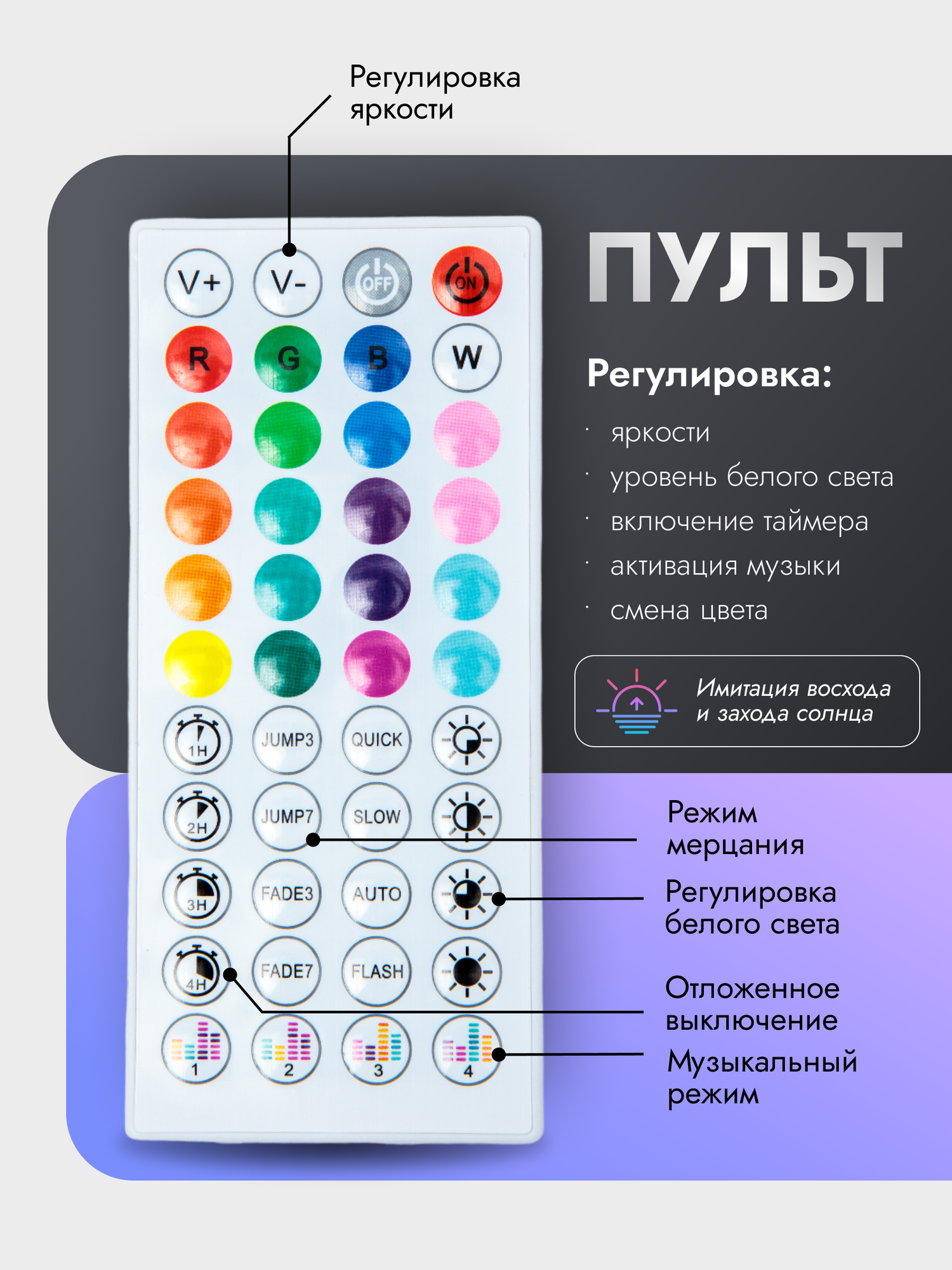 | Управление | пульт дистанционного управления / управление со смартфона |