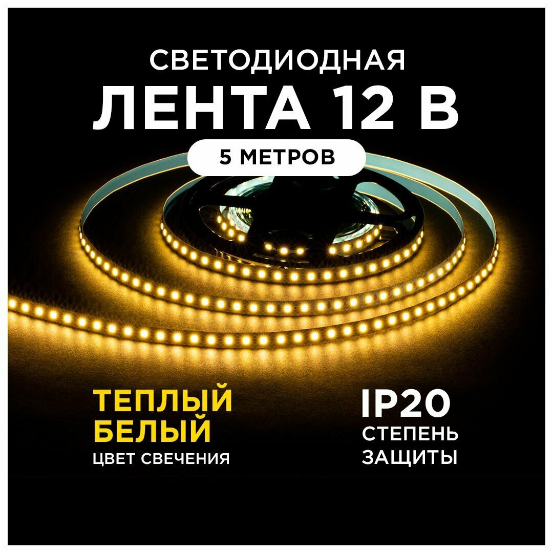 Светодиодная лента 12В, 9,6Вт/м, 3000К, IP20, 5м интересное: