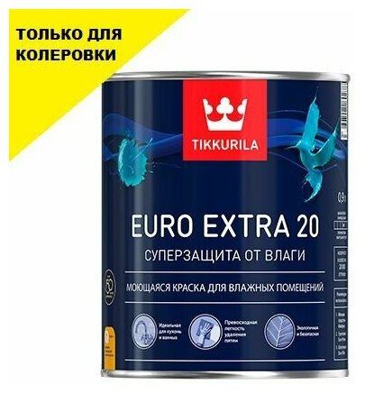Краска TIKKURILA EURO EXTRA 20 моющаяся для влажных помещений, полуматовая база С 9л бесцветная