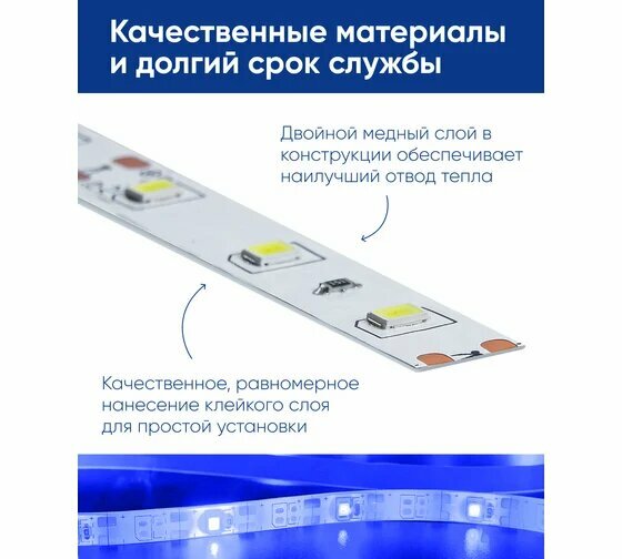 Cветодиодная лента 4.8Вт/м 5м IP20 12V синий