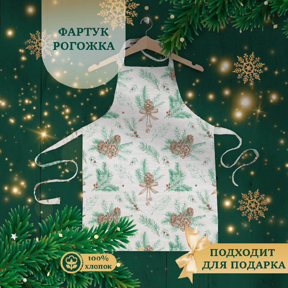 Купить Фартук кухонный Василиса 60х70 см, Рогожка, хлопок 100%, Новогодний лес