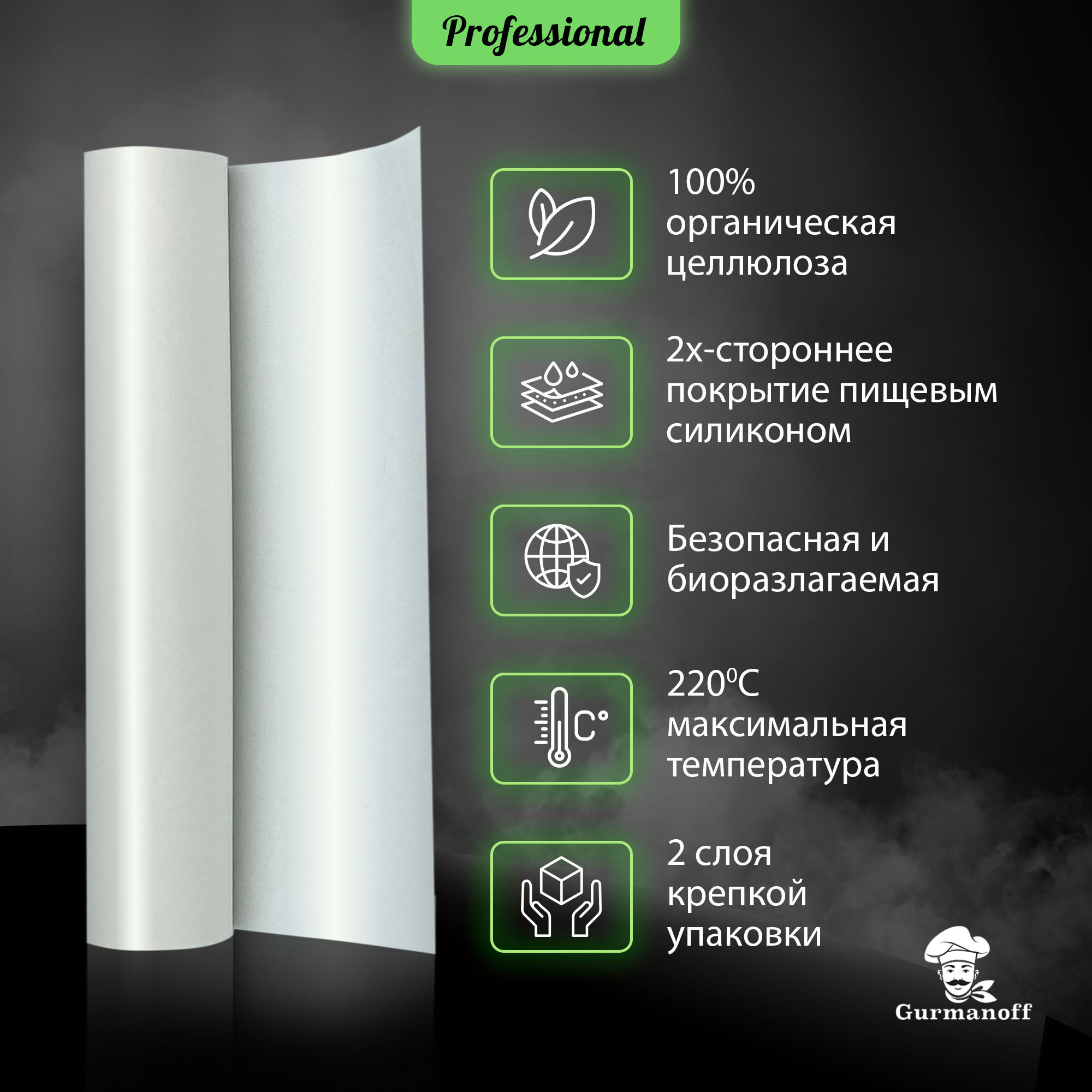 Бумага для выпечки силиконизированная Gurmanoff 25м х 38см многоразовая белая /пергамент