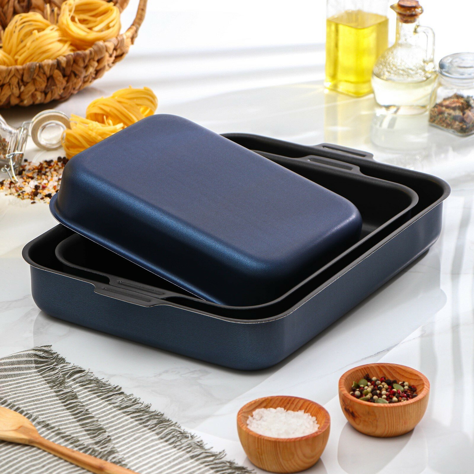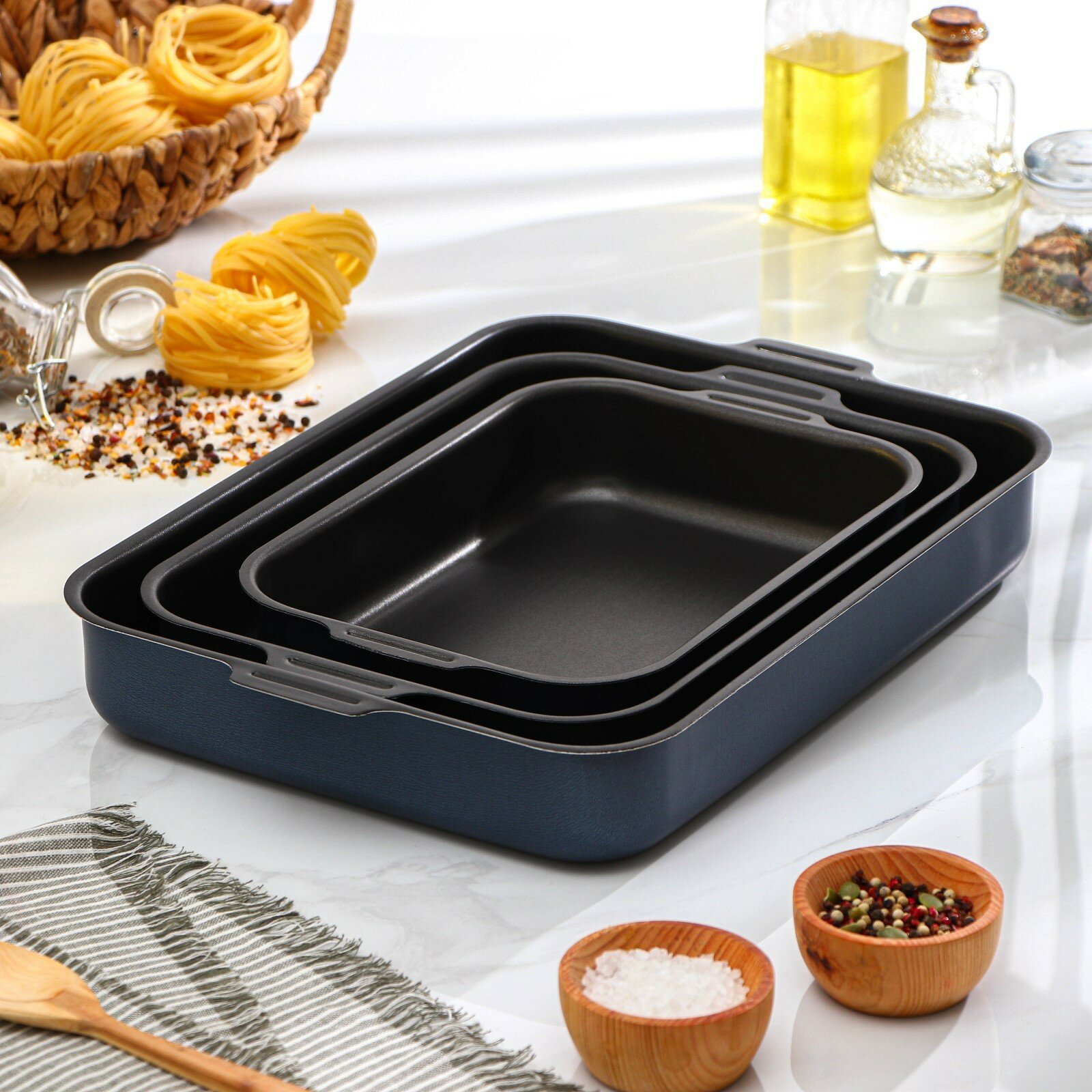 Набор противней "Лазоньера", 3 предмета: 19x25 см, 23x30 см, 27x35 см, h=7 см, антипригарное покрытие, цвет синий