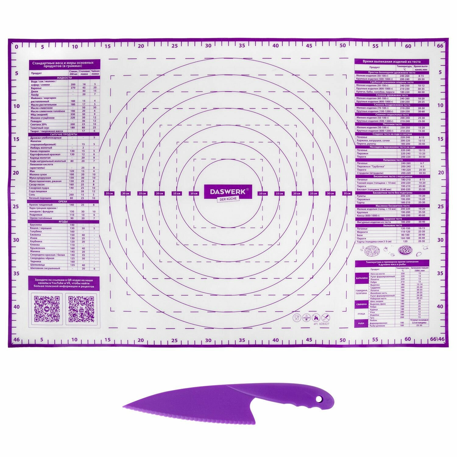 Коврик для раскатки и запекания DASWERK силиконовый, 46х66 см, фиолетовый, с пластиковым ножом