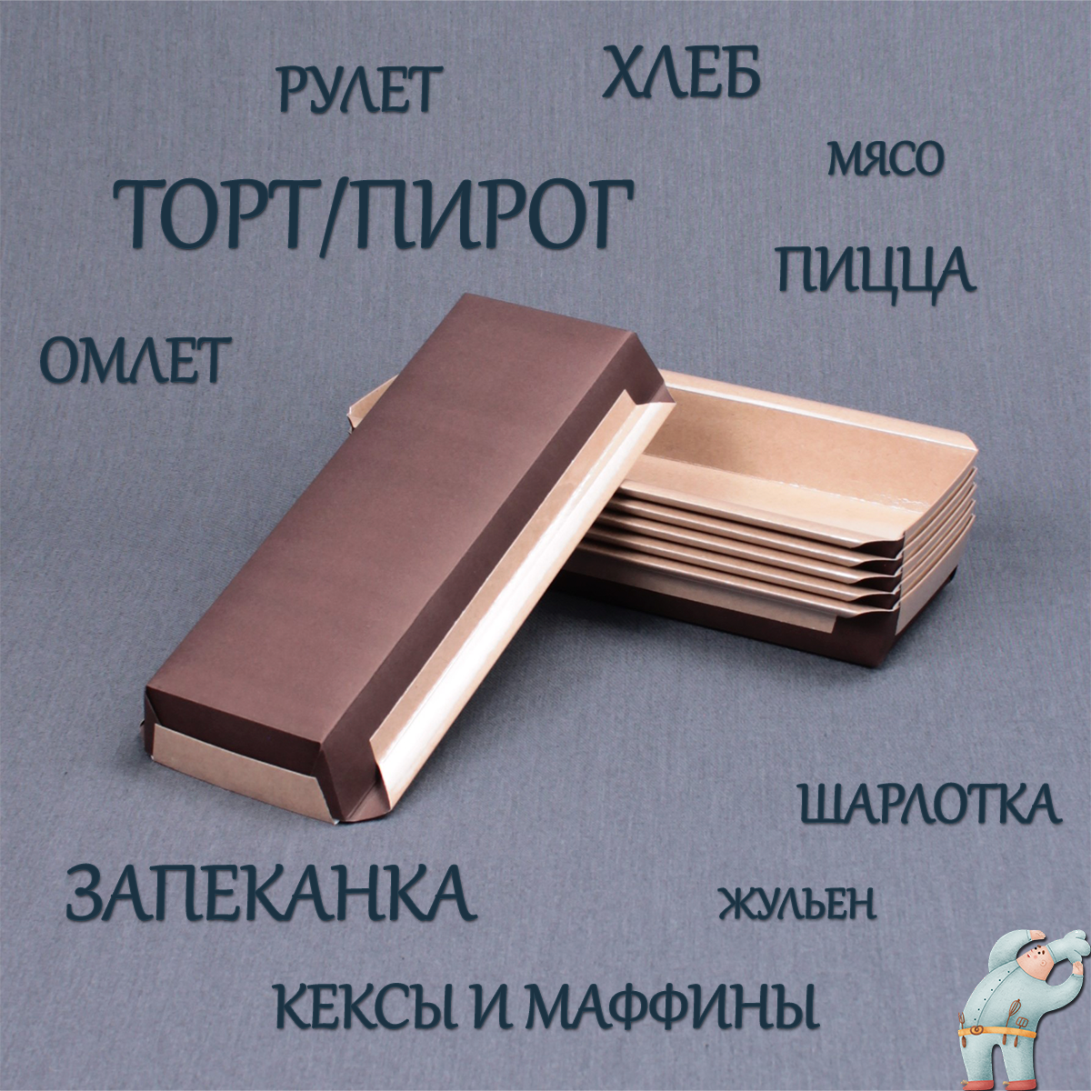 Бумажные формы для выпечки 1200 мл 35 шт прямоугольные для кексов и пирогов