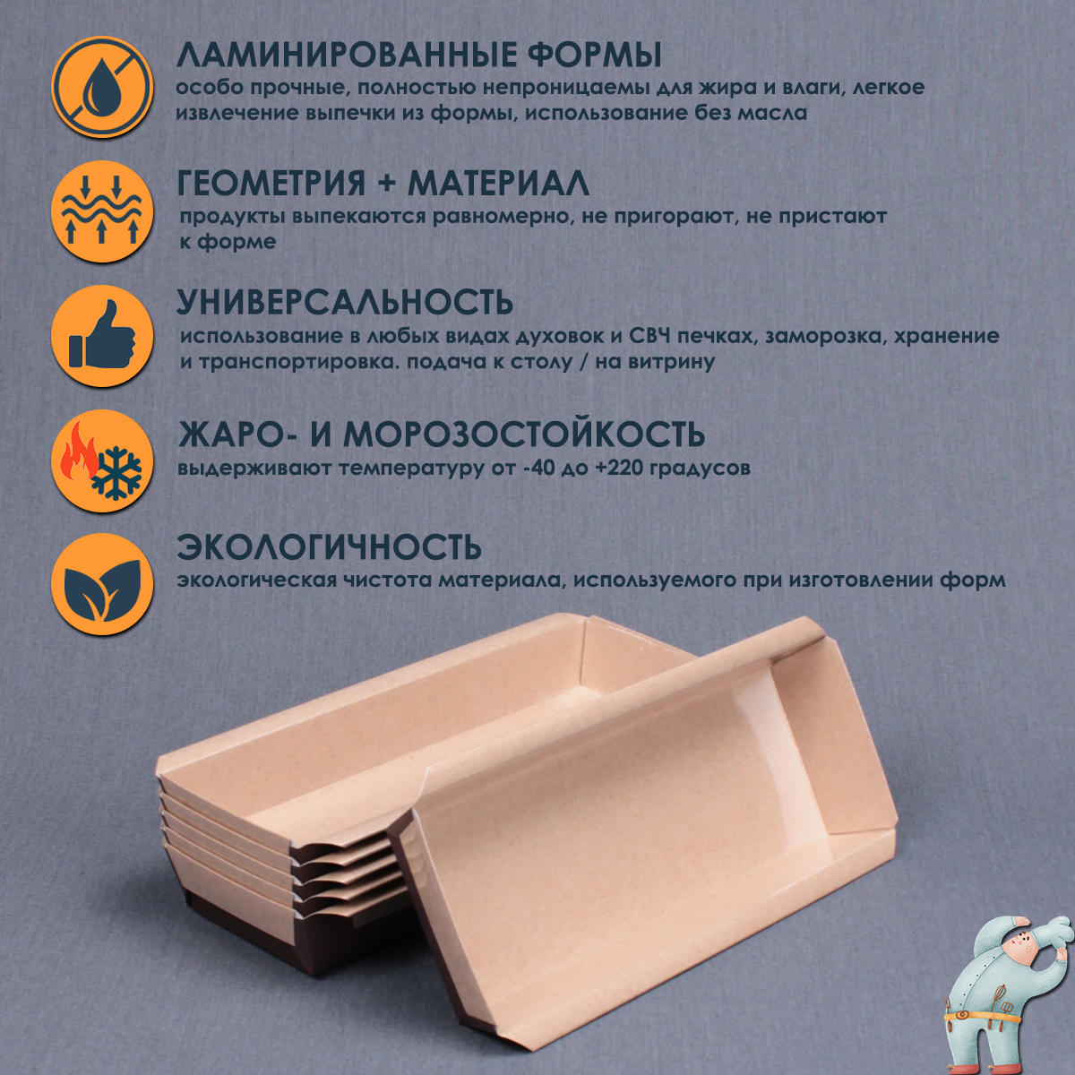 Бумажные формы для выпечки 550 мл 35 шт прямоугольные для кексов и пирогов