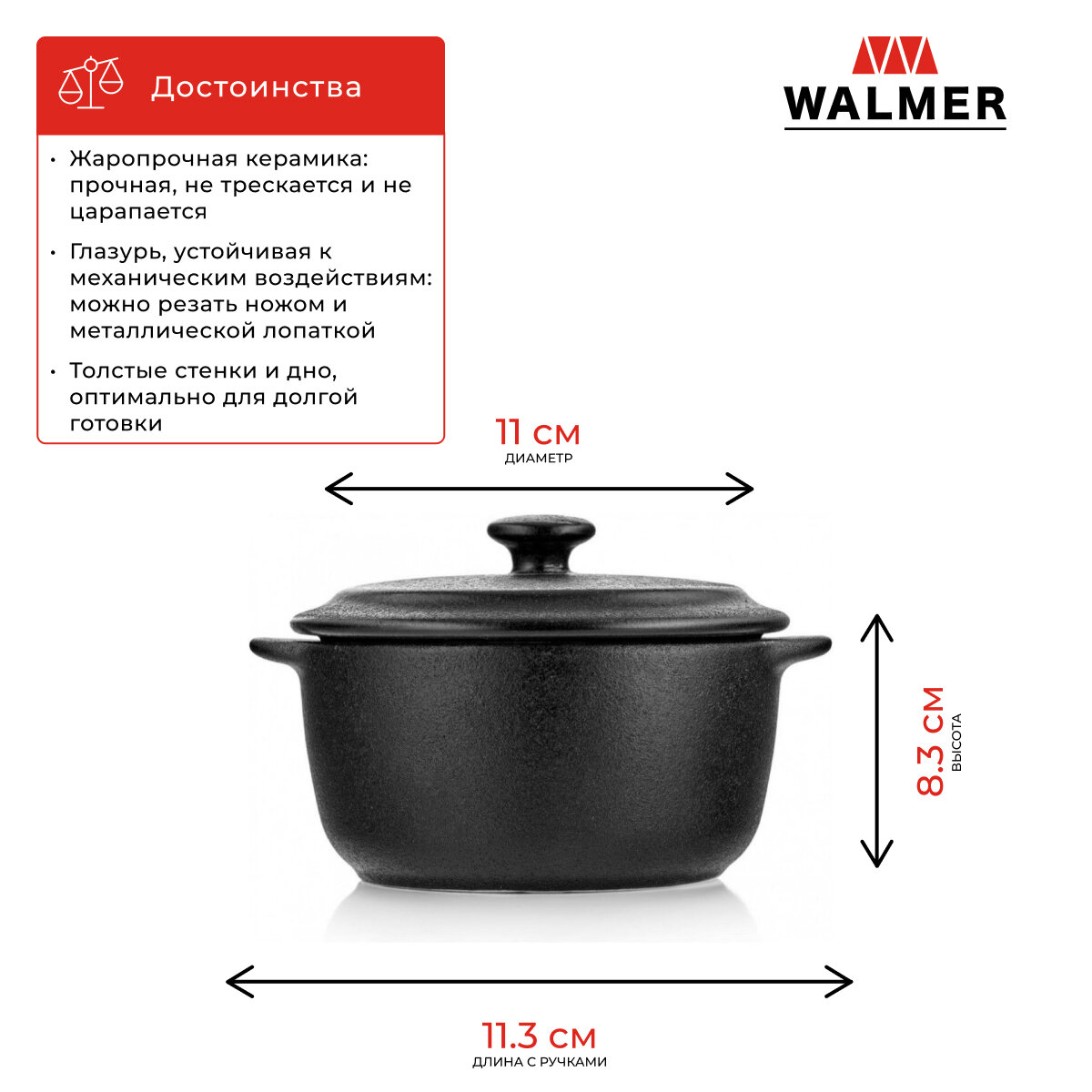 Горшочек для запекания с крышкой Walmer Iron-Black 0.45 л цвет черный