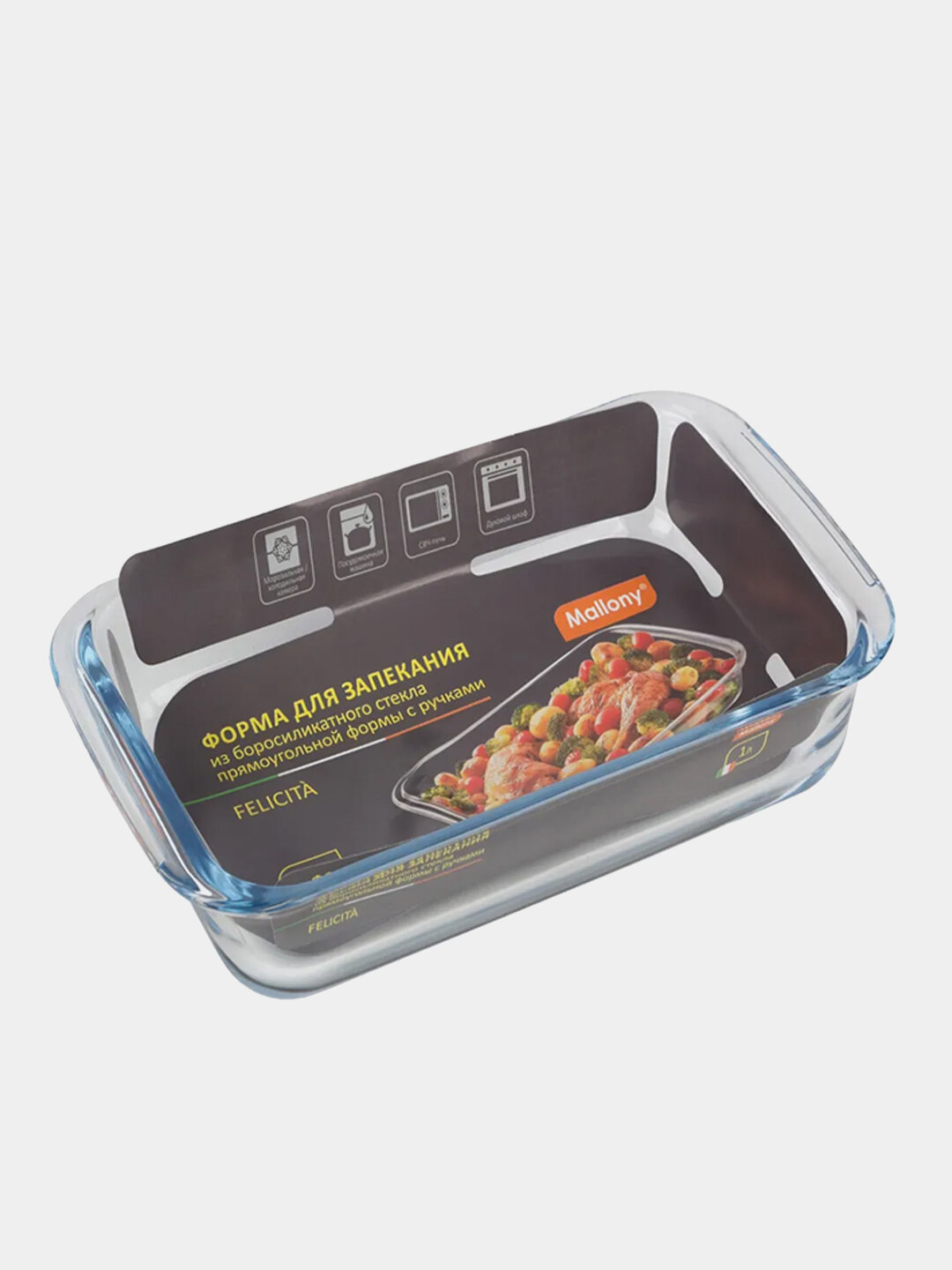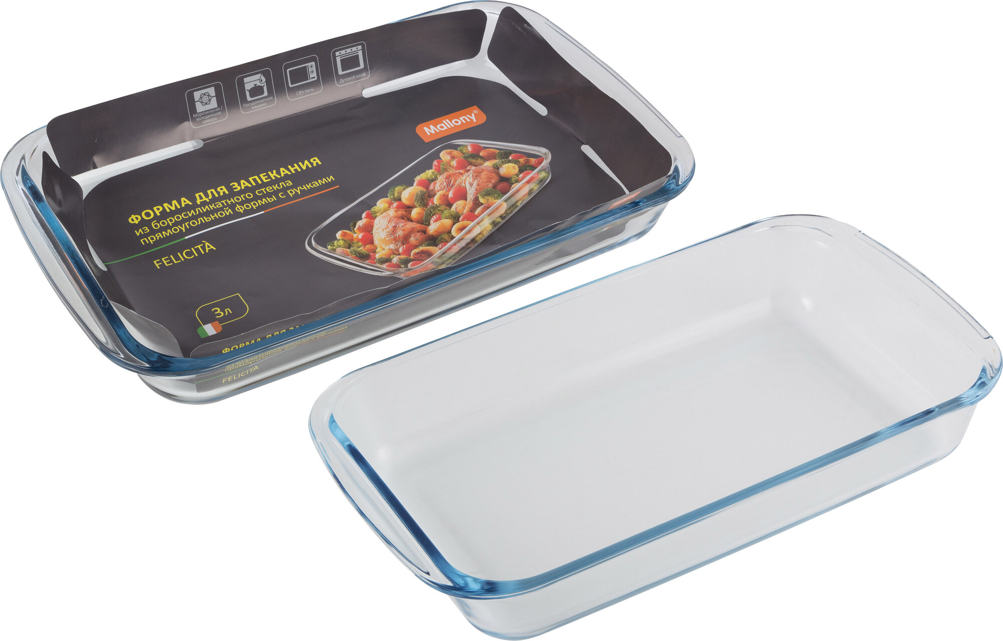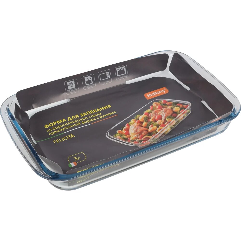 Форма для запекания из боросиликатного стекла с ручками Mallony Felicita, 29.5 x 17.5 см, 1.6 л