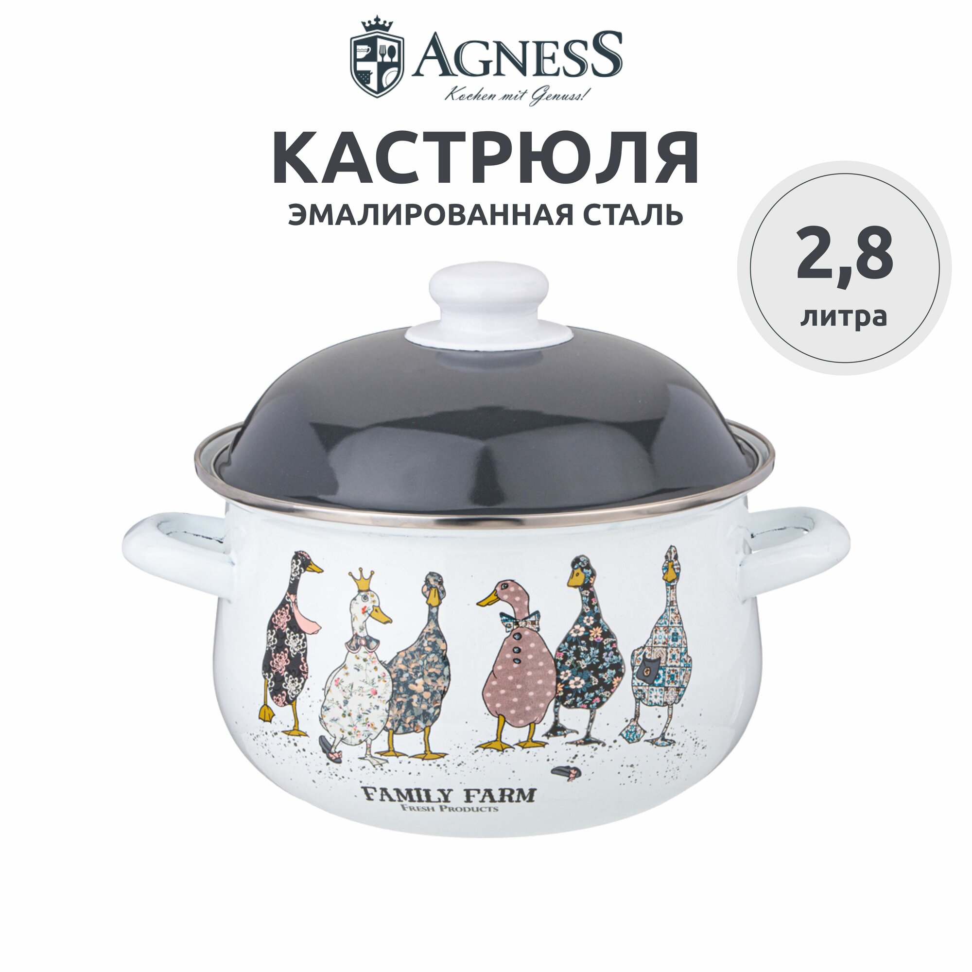 Купить Кастрюля Agness с эмал.крышкой "family farm", 2.8 л., 20х12 см (934-622)