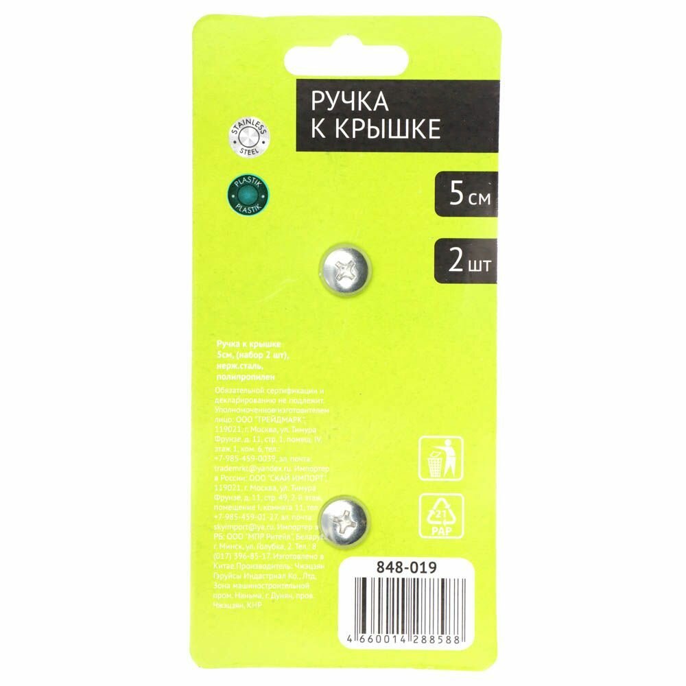 Ручка к крышке 5см, (набор 2 шт), нержавеющая сталь, полипропилен интересное: