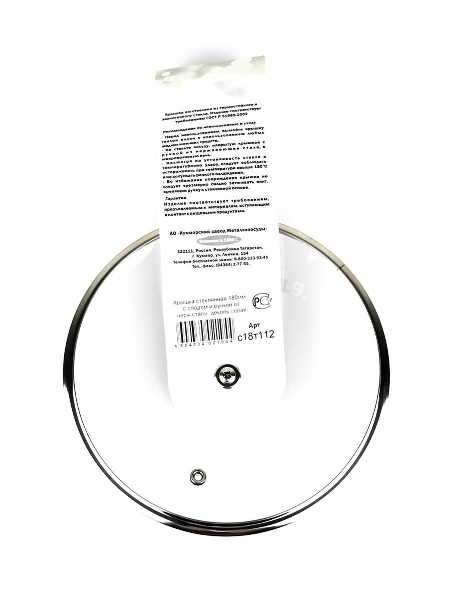 Стеклянная крышка с ручкой из нержавеющей стали Kukmara с16т112, 16 см