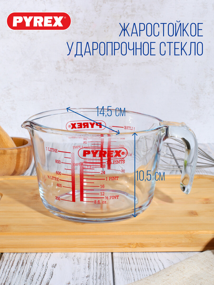 Купить Мерный стакан с крышкой Pyrex Iconic, объем 1 литр, стекло, 1 штука