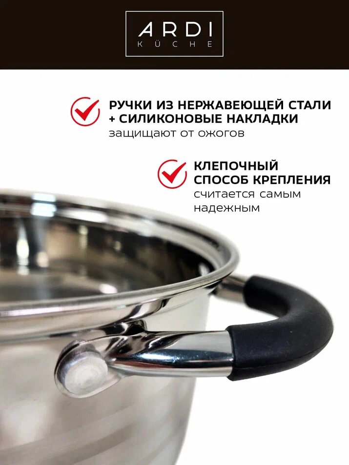 Набор кастрюль AR-820 ARDI Küche, нержавеющая сталь, серебристый, с крышками