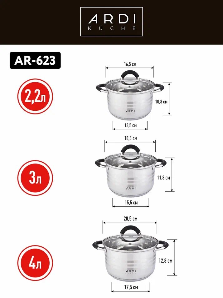 СохранитьНабор кастрюль AR-623 ARDI Küche, нержавеющая сталь, серебристый, с крышками интересное: