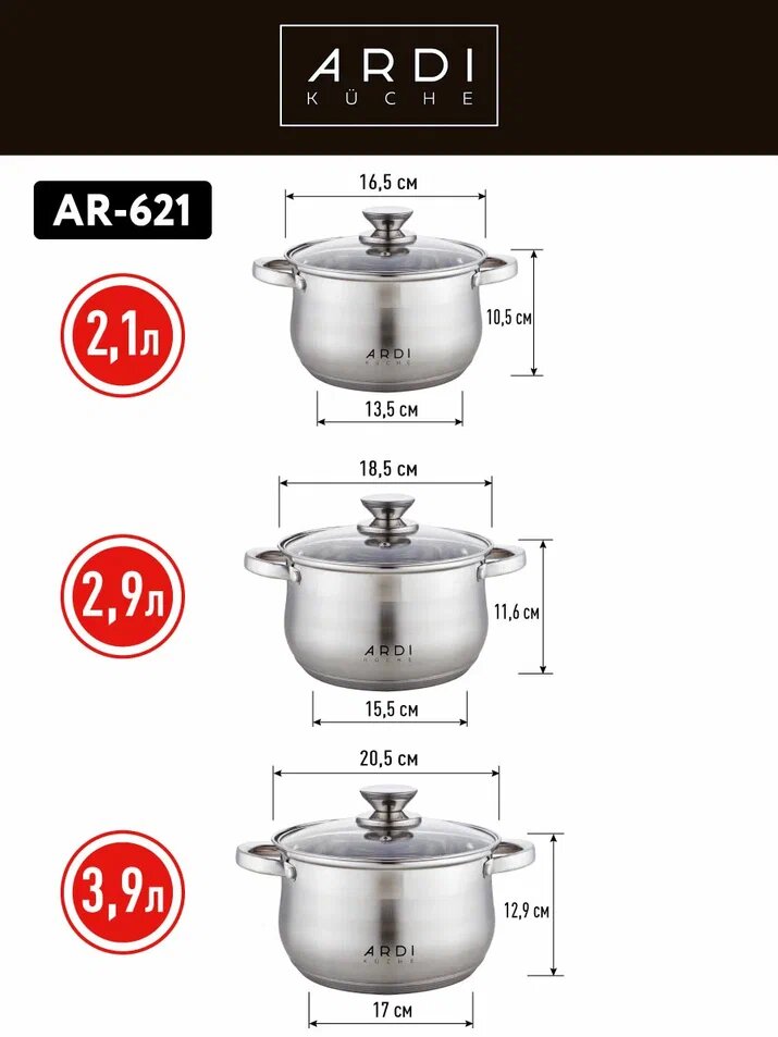 СохранитьНабор кастрюль AR-621 ARDI Küche, нержавеющая сталь, серебристый, с крышками интересное:
