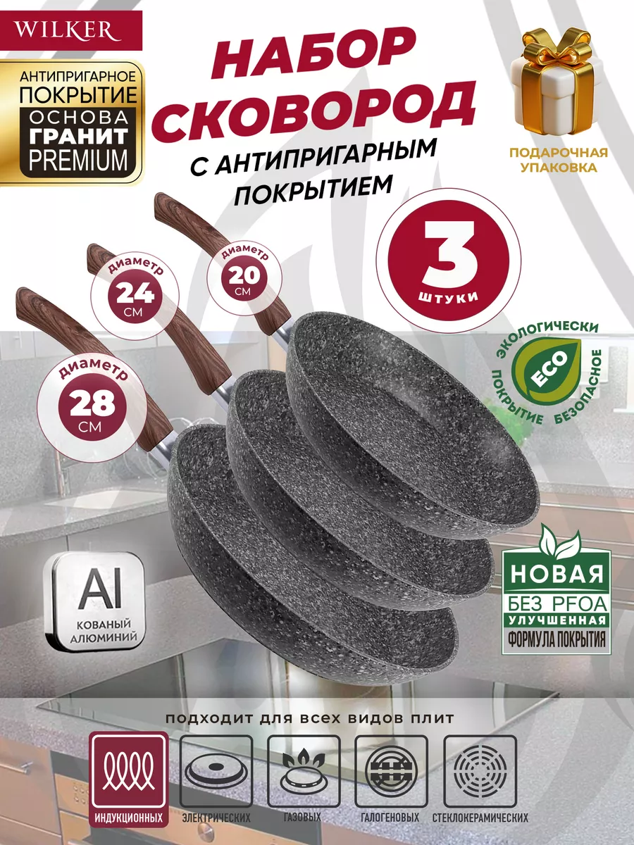 Wilker Набор сковородок 3 шт: диаметром 20, 24, 28 см с антипригарным покрытием интересное: