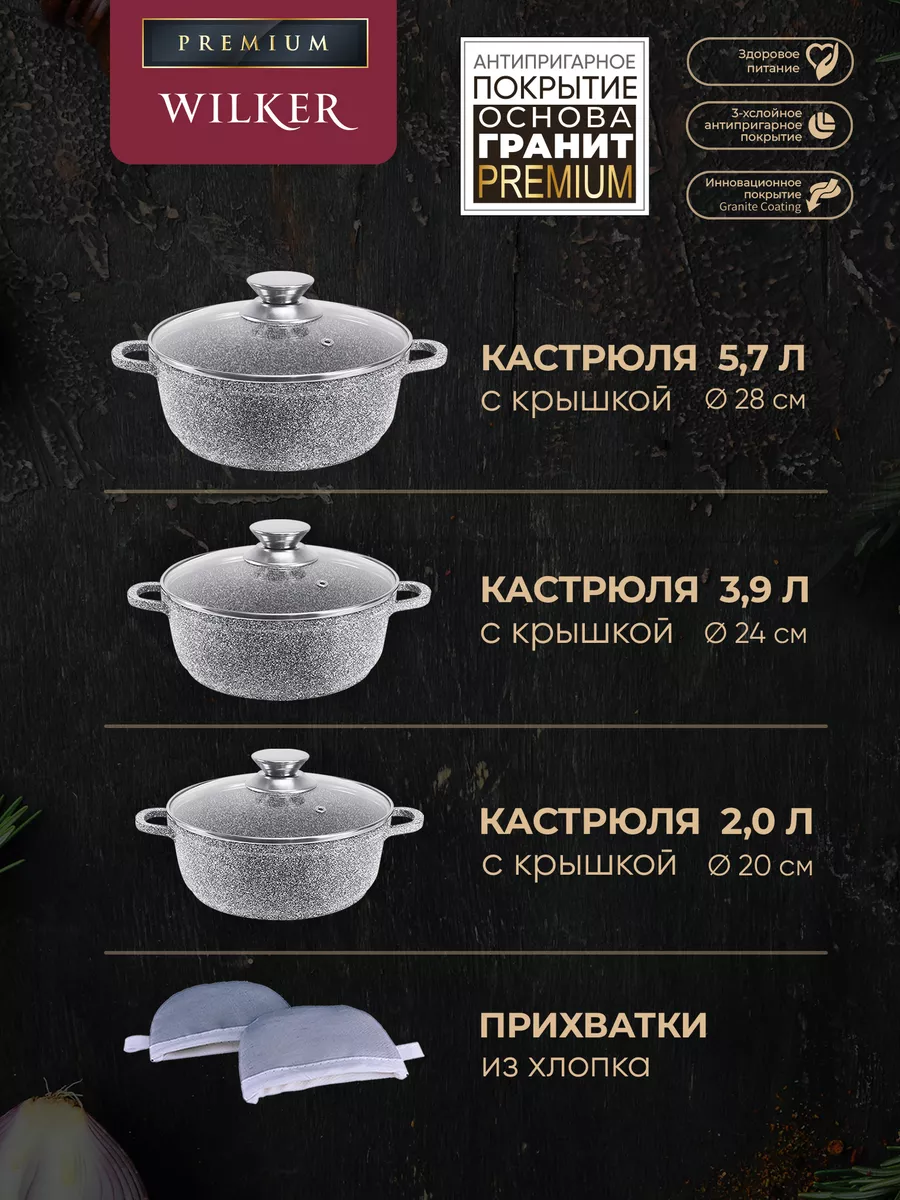 СохранитьWilker Набор кастрюль 3 шт 2л, 3.9л, 5.7л, крышки, прихватки (7 предметов) интересное: