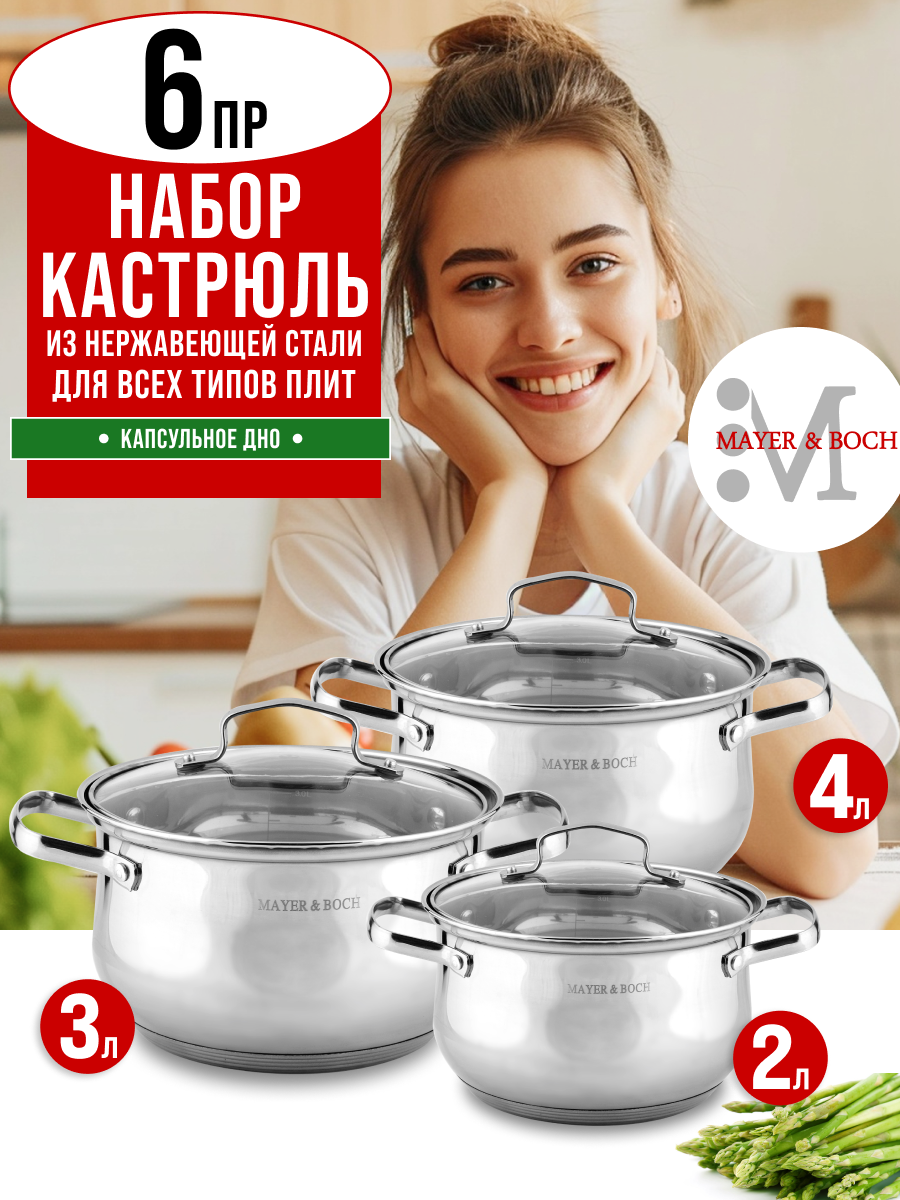 Набор посуды Mayer&Boch 31003 6 предметов 2,3+3,8+5,0 л (х1)