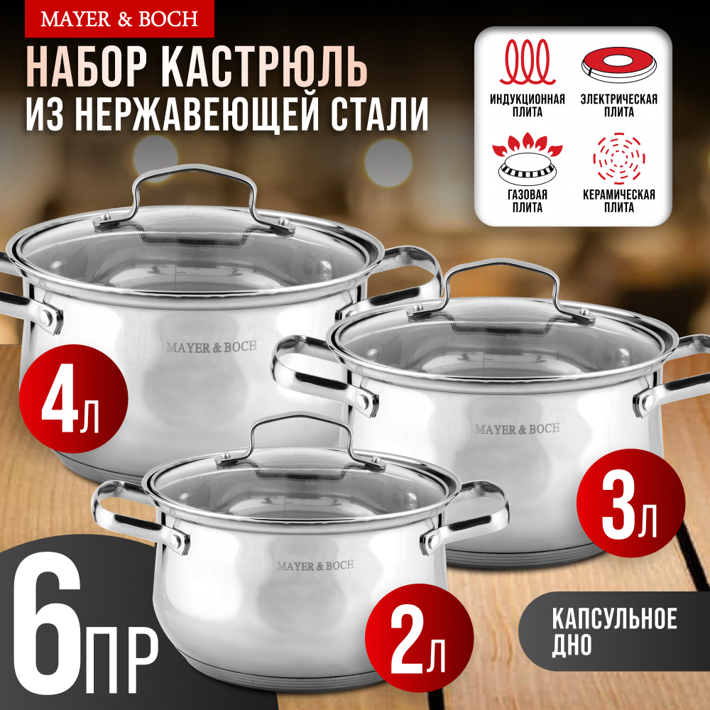 Набор кастрюль MAYER&BOCH из нержавеющей стали с крышками